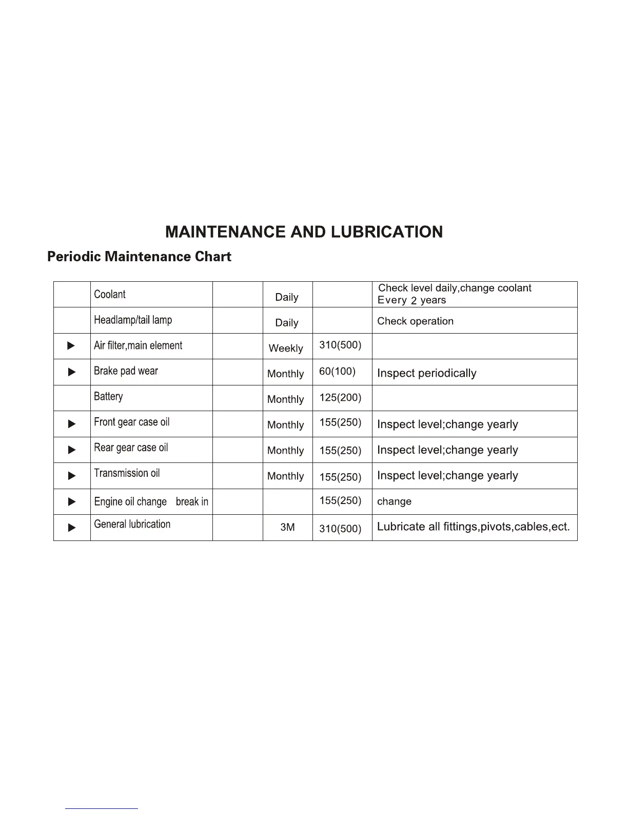 Inspect. Clean every 1000km or 100