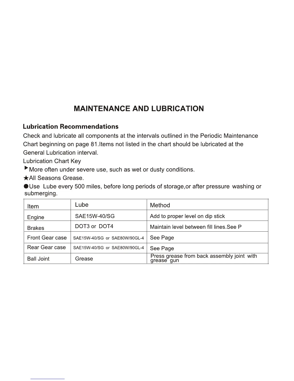Goes Cobalt - Lubrication Recommendations; Lubrication Chart Key