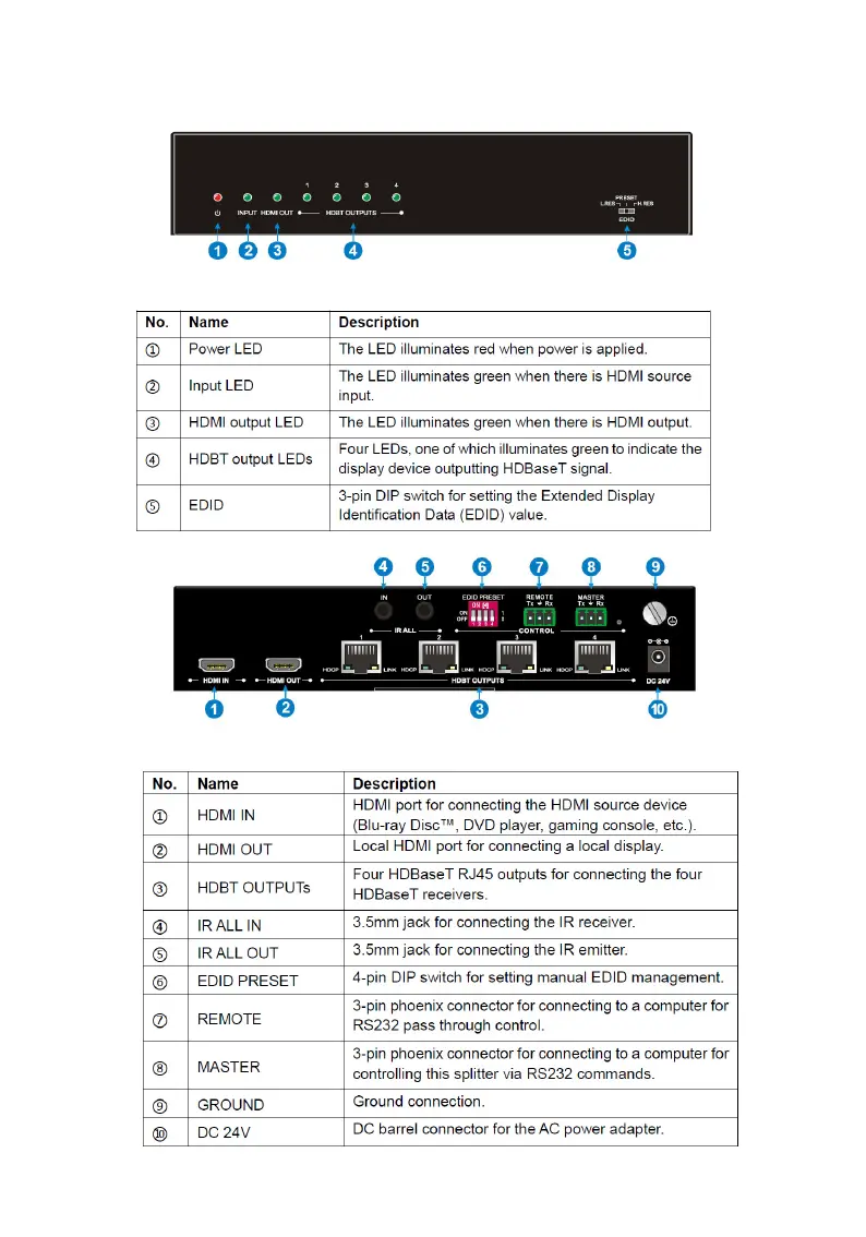 Figure 1: HDBaseT Splitter Front Panel Layout