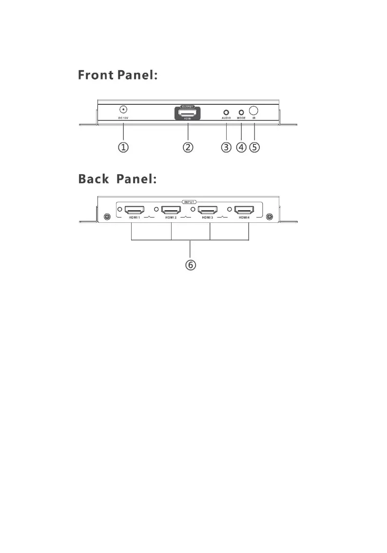 6. HDMI Inputs (1-4): Connect to your HDMI sources