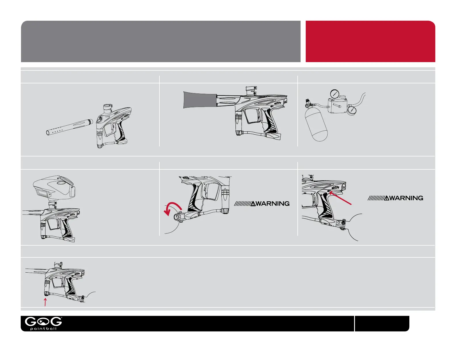 Fill the loader with paintballs. If it is a powered loader, turn it on. While wearing ASTM compliant paintball goggles, in an area where all bystanders are protected, remove the barrel
