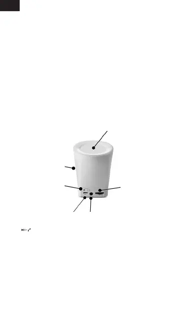 3. „+ “: tlačítko volby směrem nahoru. Dlouhým stisknutím zvýšíte hlasitost. Krátkým