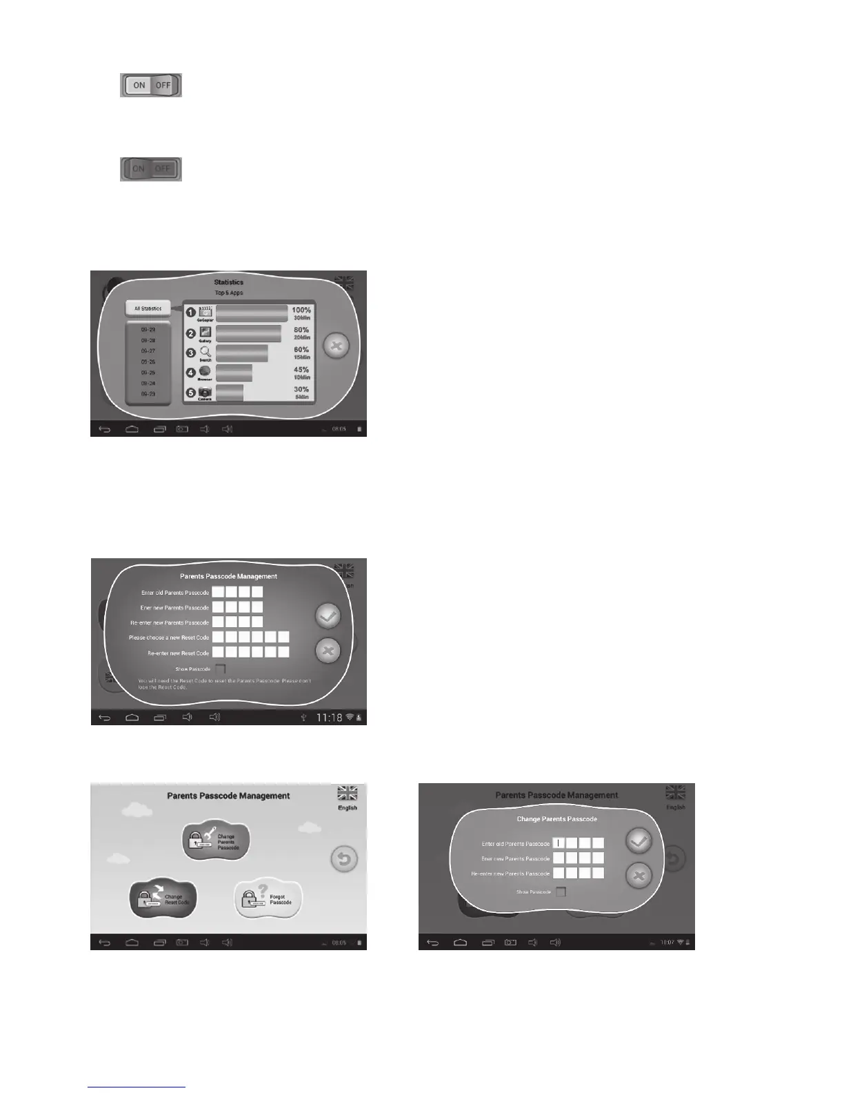 • Ak opäť meníte rodičovské heslo (nie prvýkrát), zobrazia sa vám nasledujúce obrazovky: