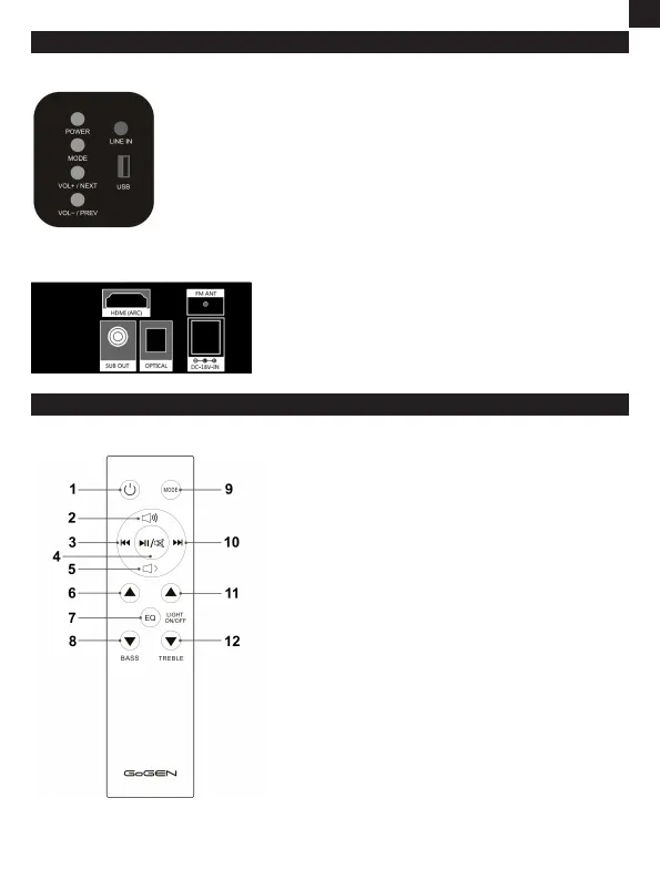 MODE - Press repeatedly to switch among FM TUNER, HDMI ARC, LINE IN,