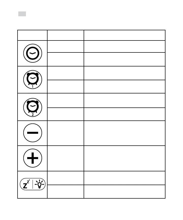 按下并按住 3 秒=打开闹钟/进入闹钟设置模式