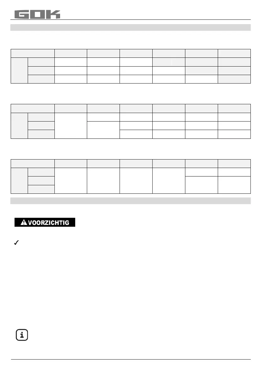 Tabel 3: Te beveiligen lengte van de slangleiding in meter met nominale