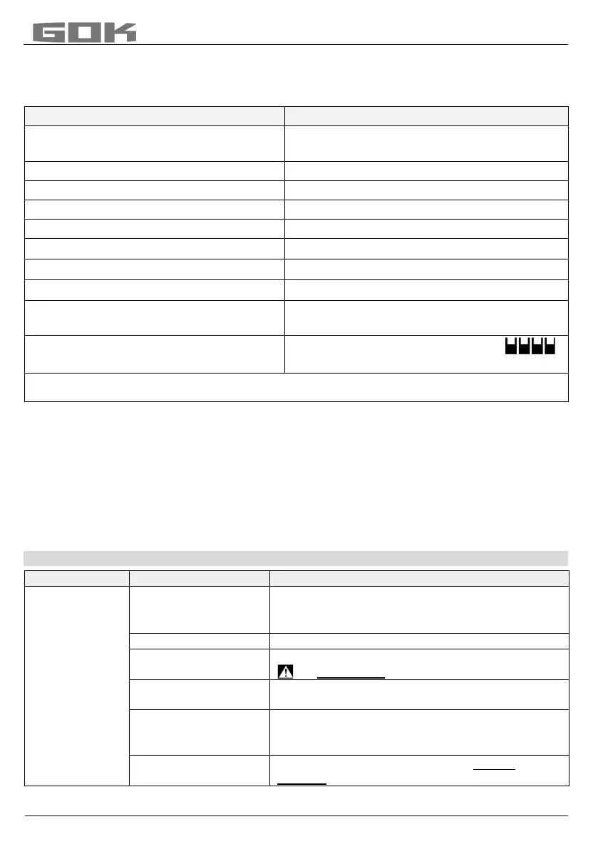 Reset values from menu step 9 to factory