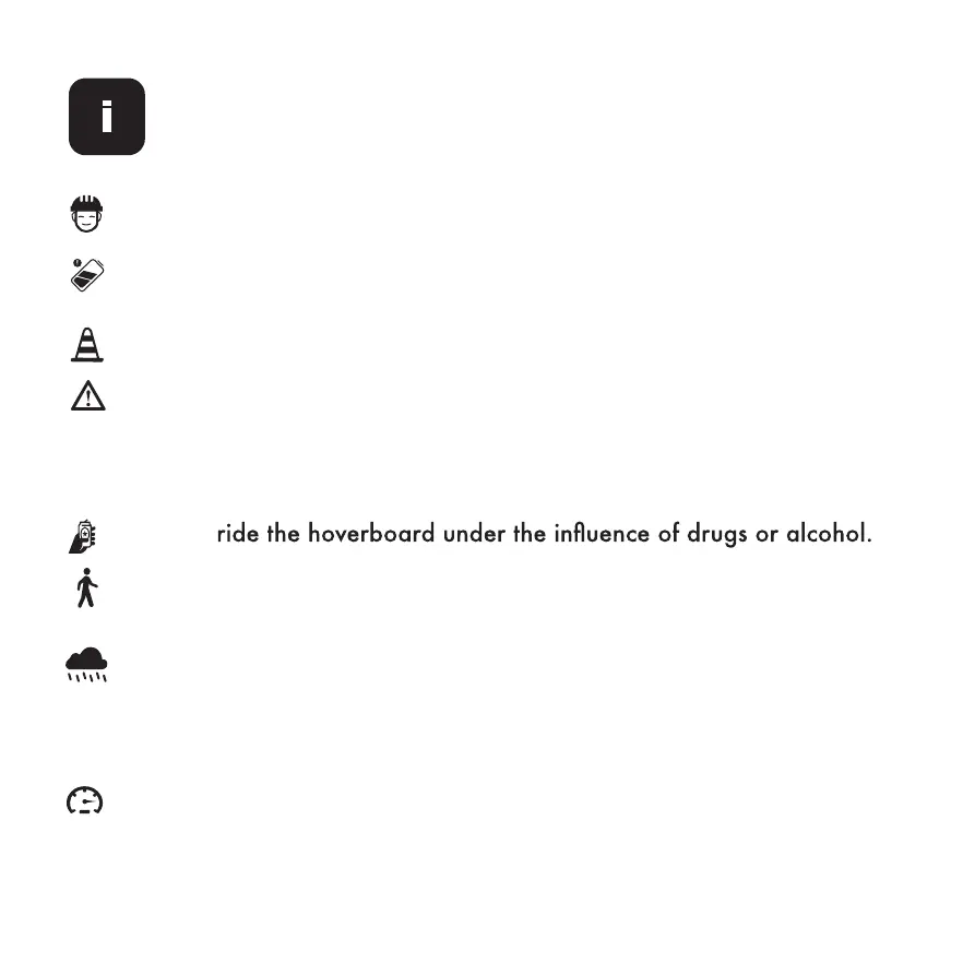 Do not ride under wet conditions. The hoverboard may slide from