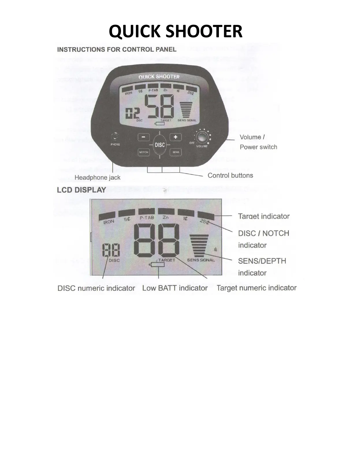 Gold Digger QUICK SHOOTER - Control Panel Overview; LCD Display Indicators; Control Buttons and Ports; Volume and Power Switch