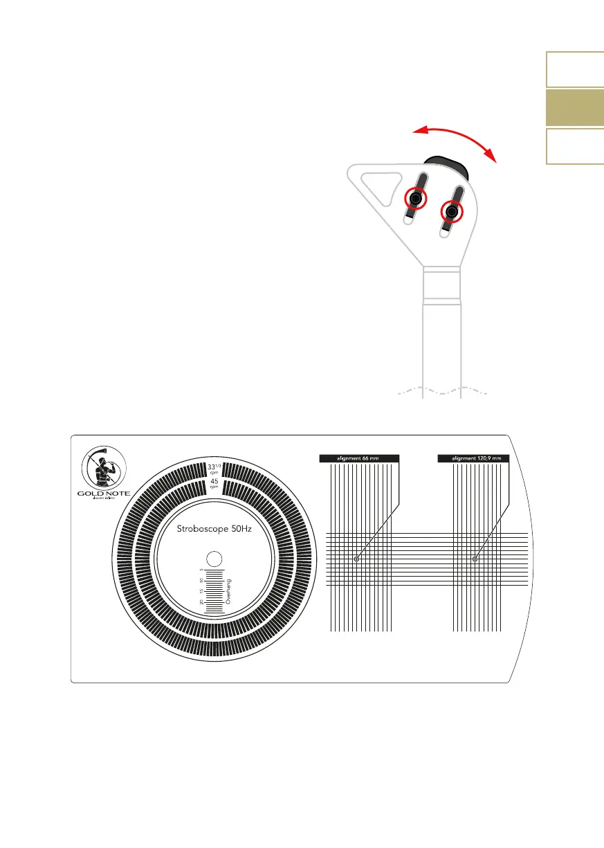 Spitze des Tonabnehmers über den Kreisen