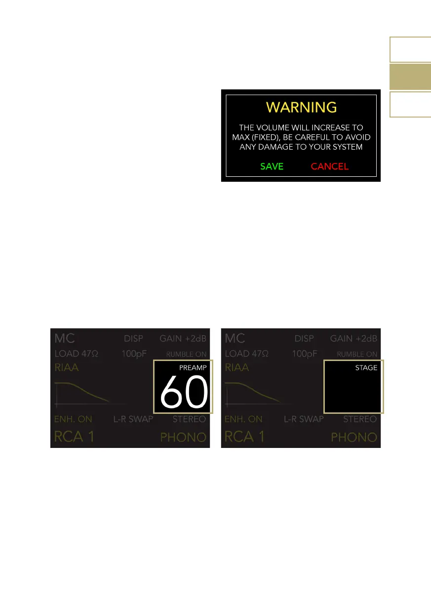 Bildschirm in PREAMP Modus Bildschirm in STAGE Modus