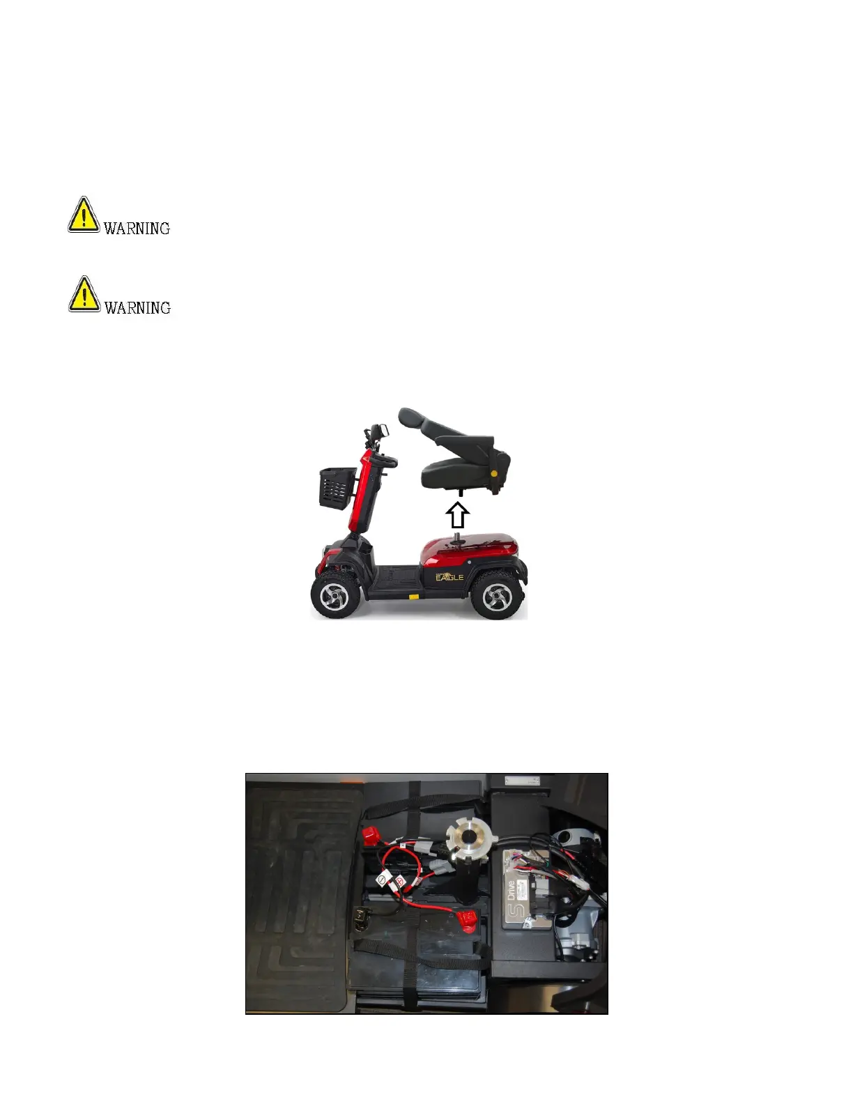 Never pull on the arms or use them as a handle to move the scooter as