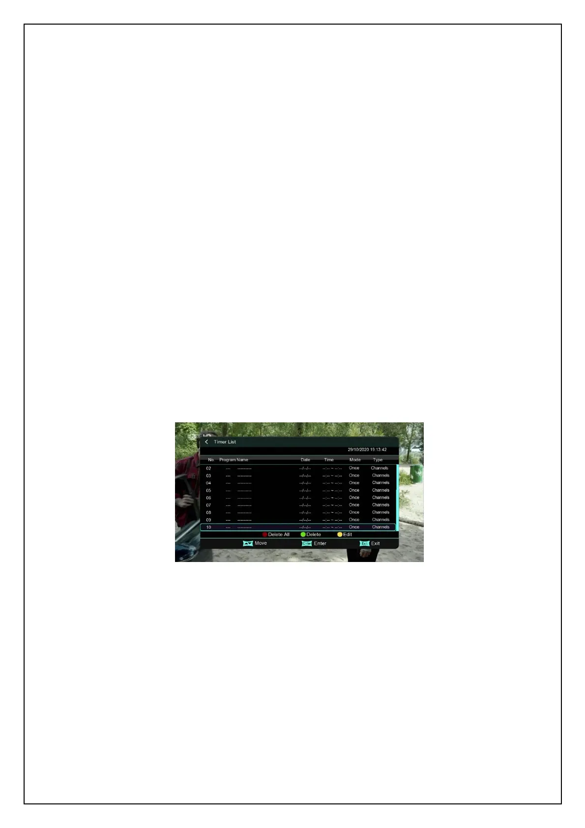Through the Timers item, you can manage scheduled programs. In the Timers menu you can