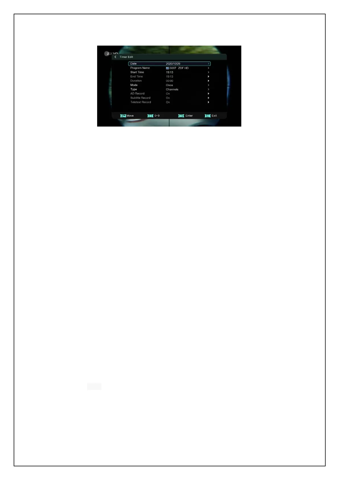 ‘Record’. To edit it, highlight the Duration item first and then press RIGHT key to enter its