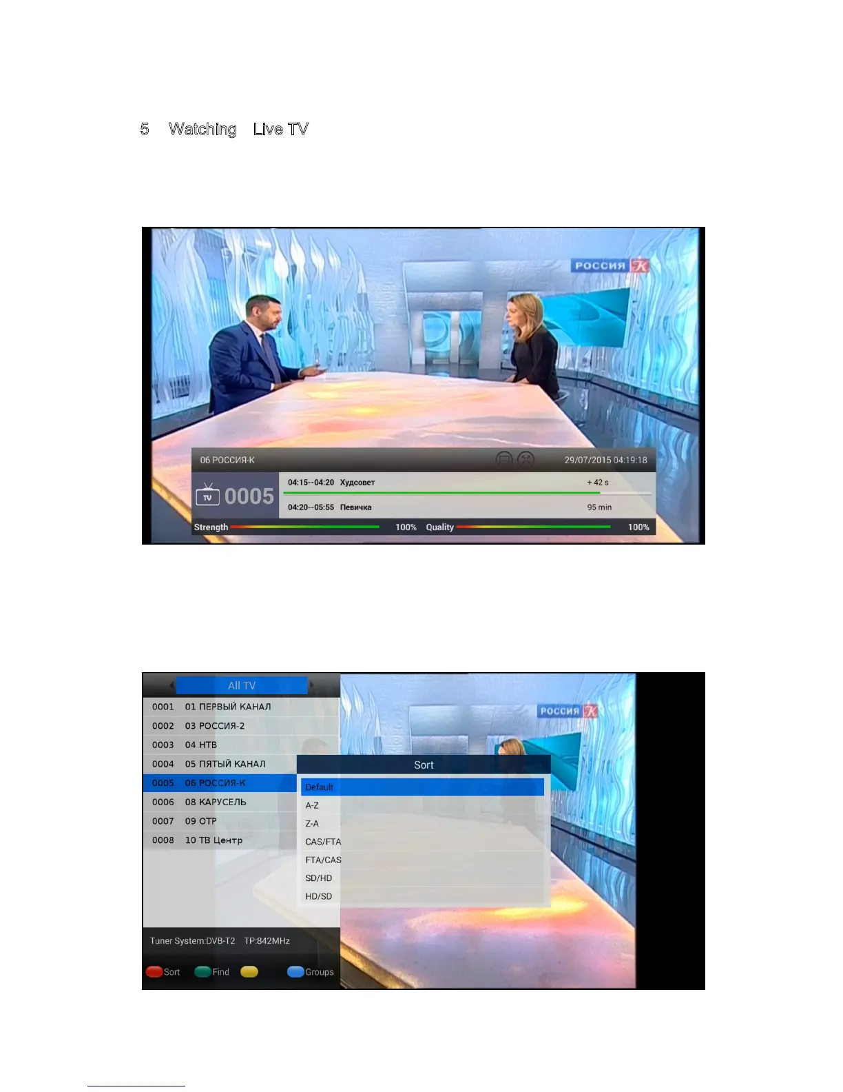 Press OK button to show channel list and choose channel. You could Sort channel by