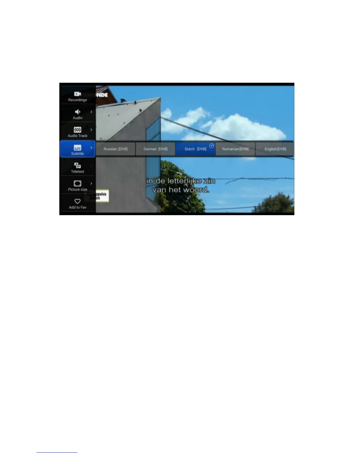 Press MENU button to display DTV menu for more option. You could choose subtitle,