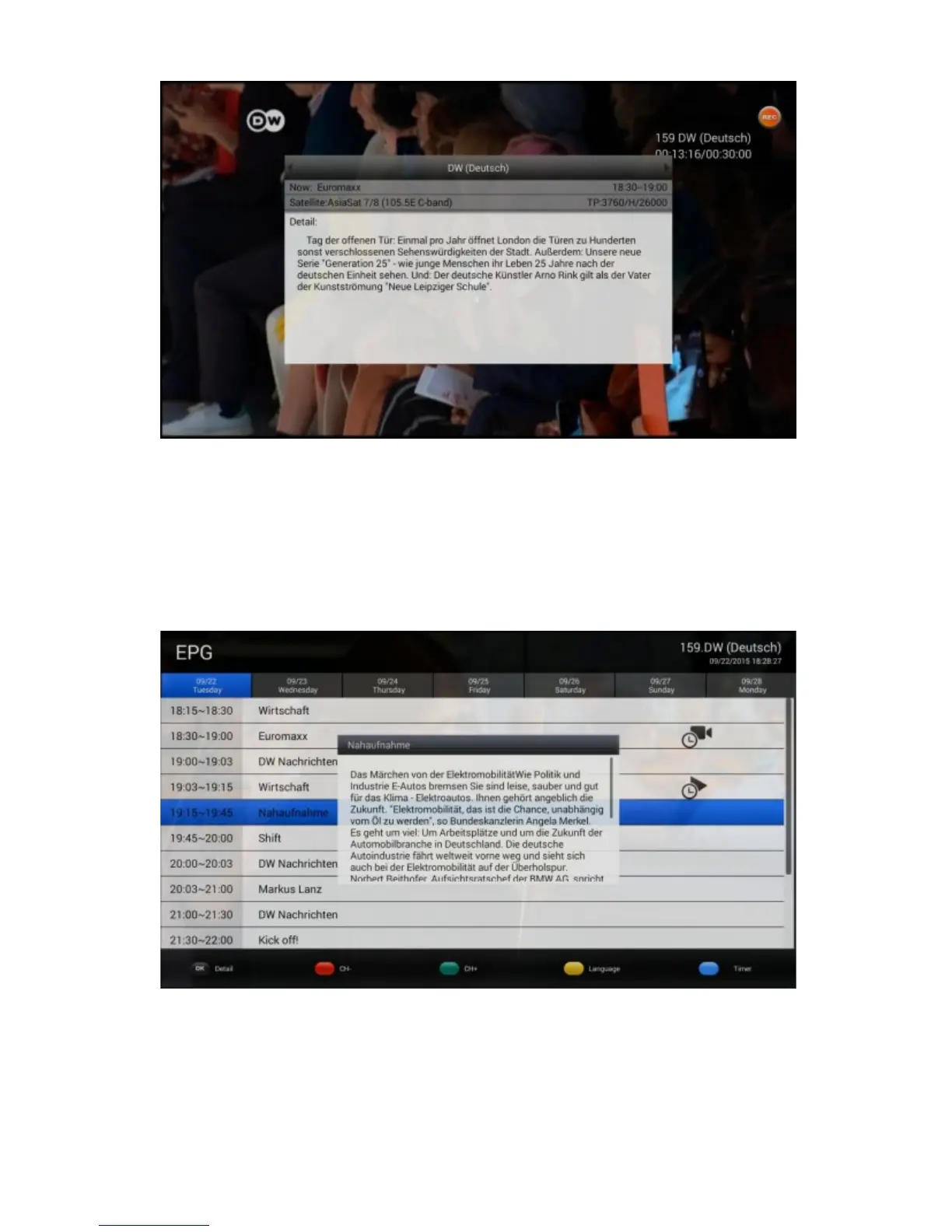 multilingual EPG by press Yellow button if multilingual EPG are available from operator.