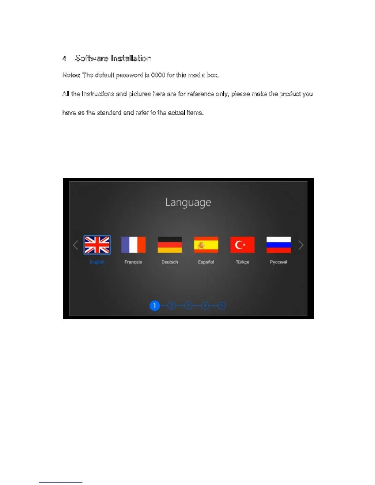Notes: The default password is 0000 for this media box.