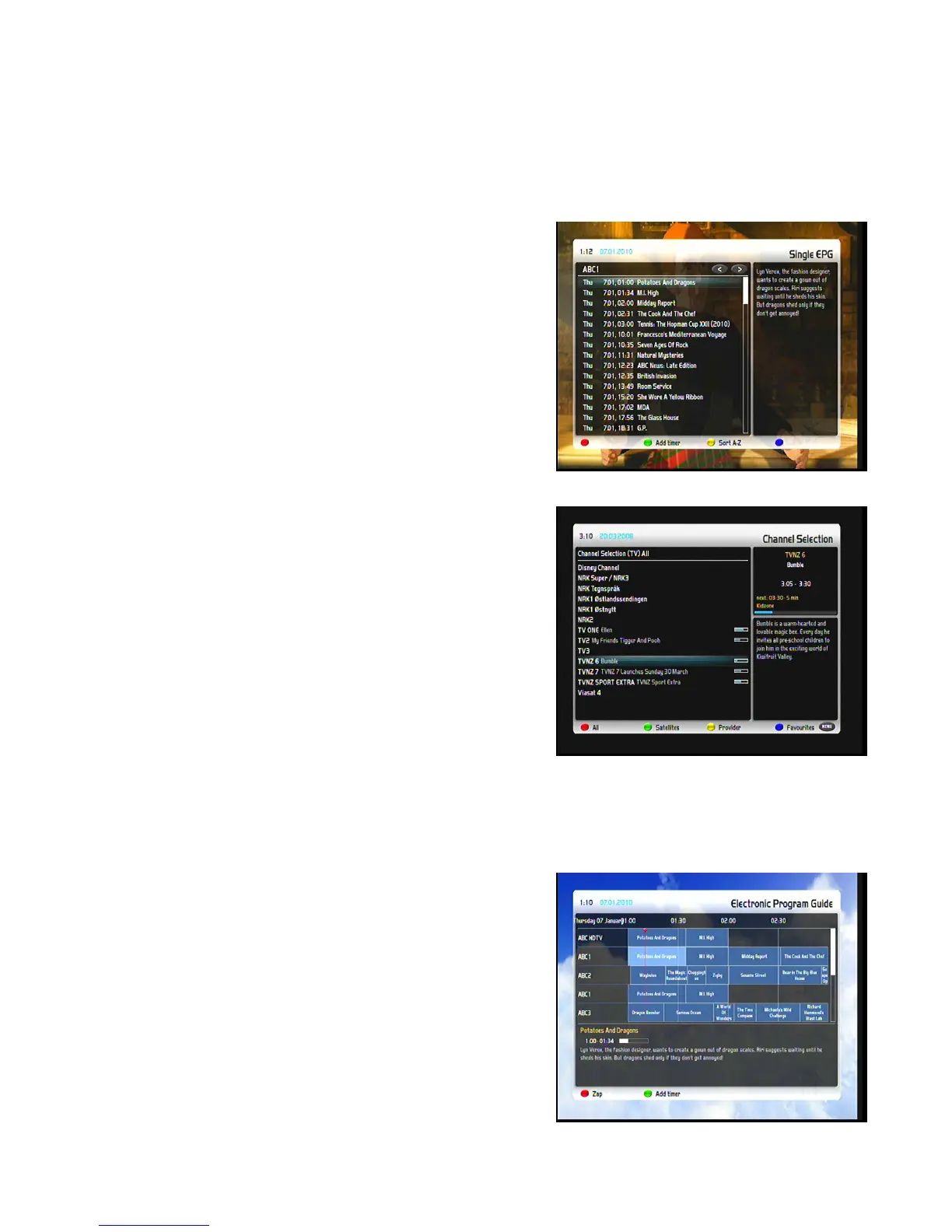 обзор показывает текущие передачи каналов, перечисленных в