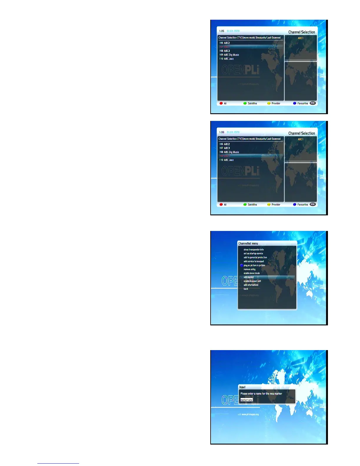 С помощью кнопки Menu откроется "Channel list menu" (Меню