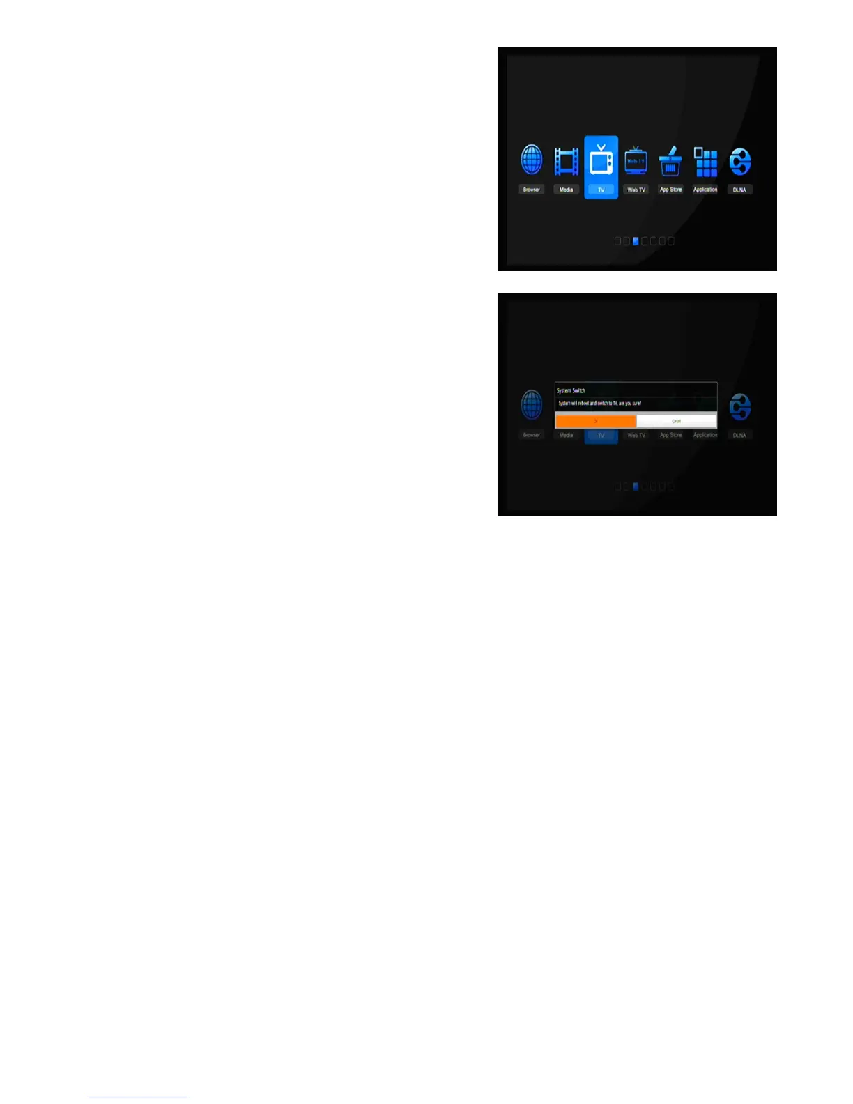 Das "System wird neu gestartet und auf TV umschalten", das
