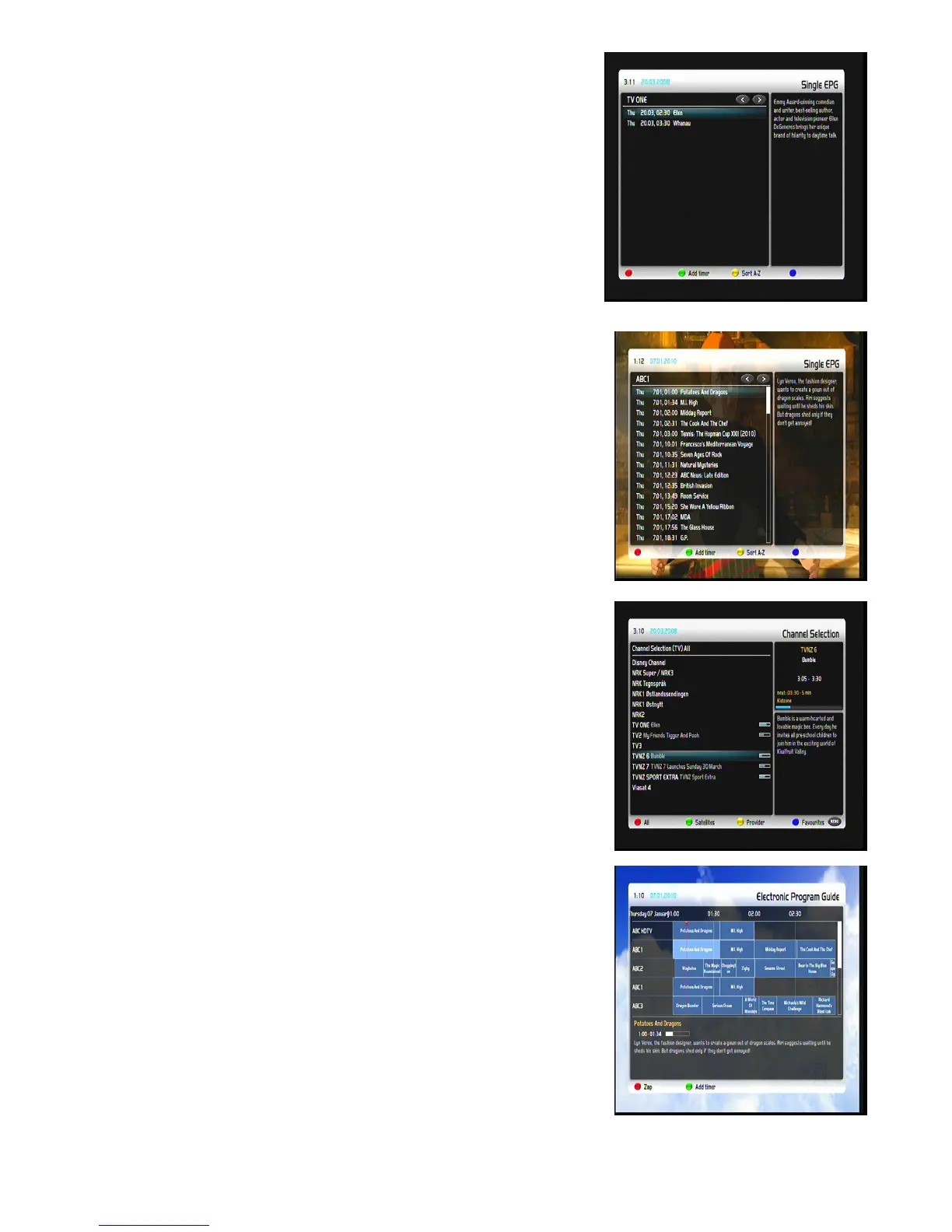 des émissions successives. Le multi-EPG graphique affiche les horaires