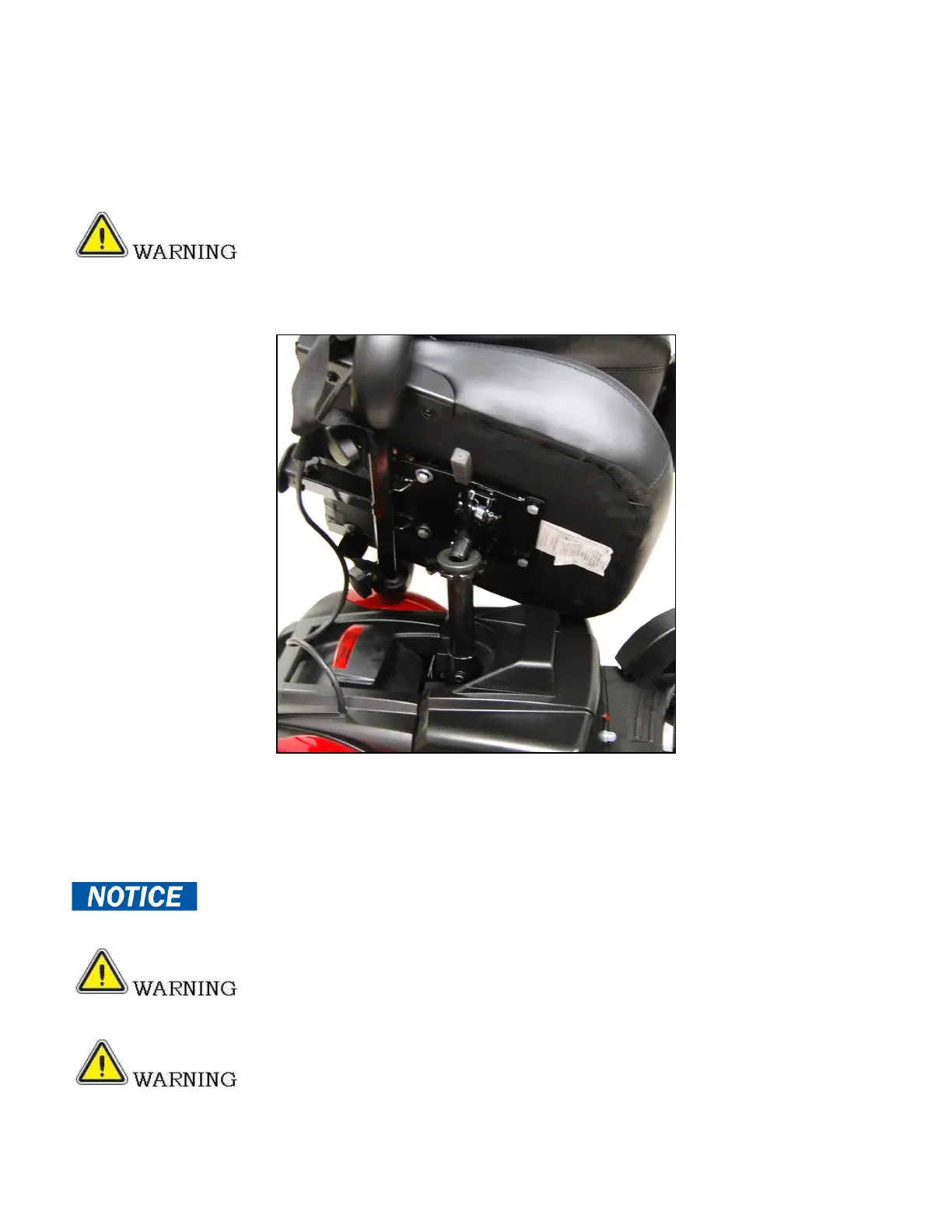 power chair as they could inadvertently pull out of the receiver bar causing injury.