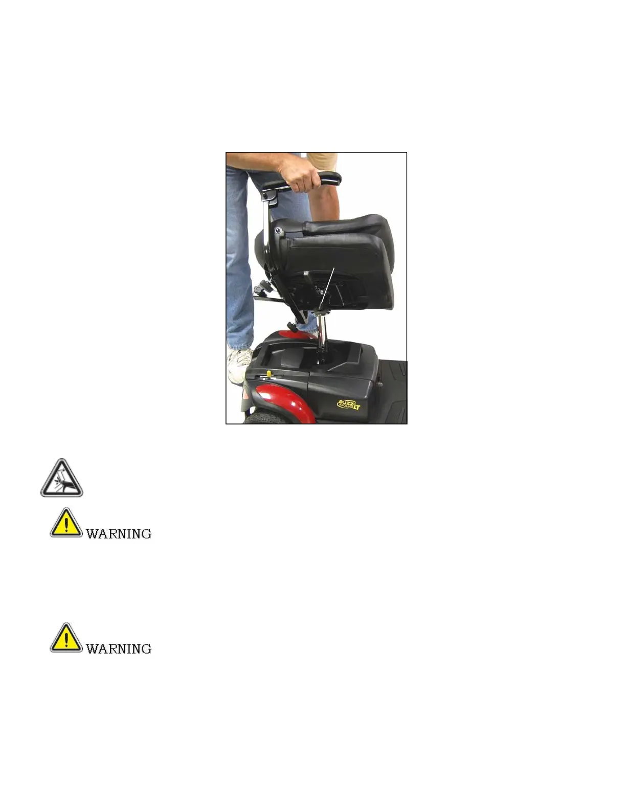 WARNING! Pinch Point! Keep hands and clothing clear of the seat swivel post