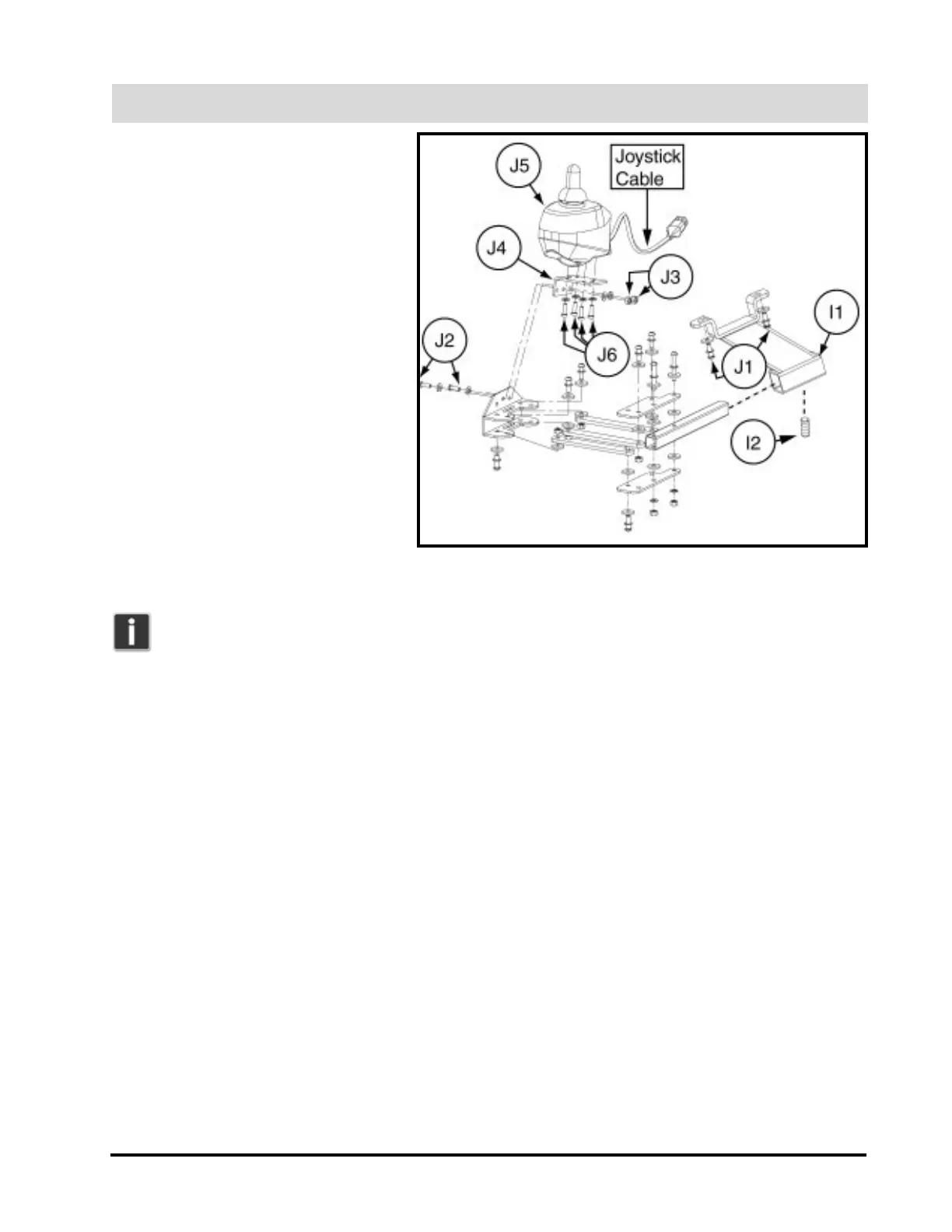 4. Remove the two 3-mm button-head screws (J2) and 5/16-in. nuts (J3) from the joystick mounting plate