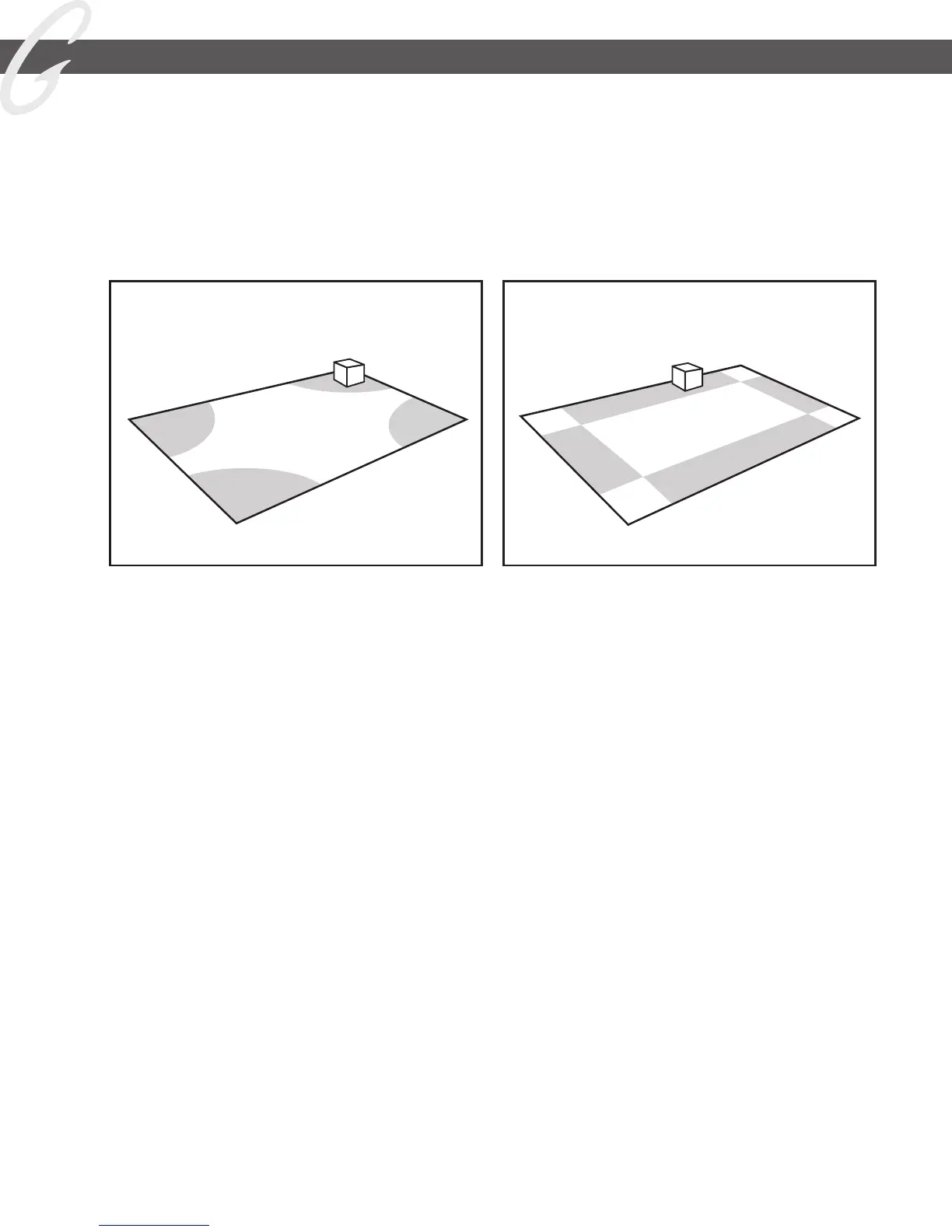 listening area of your room, placing the subwoofer inside the “shaded” areas will typically result in