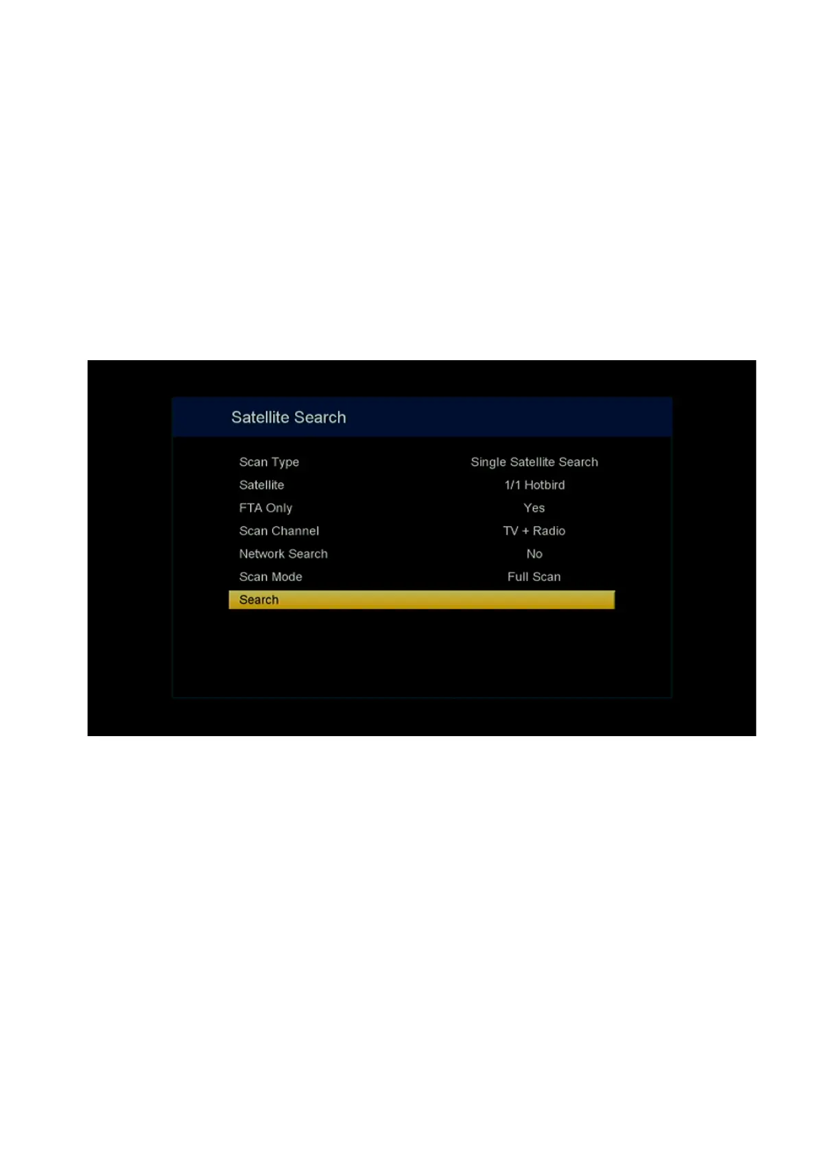 Scan Type – if you select one satellite in the settings, you will be prompted to search for