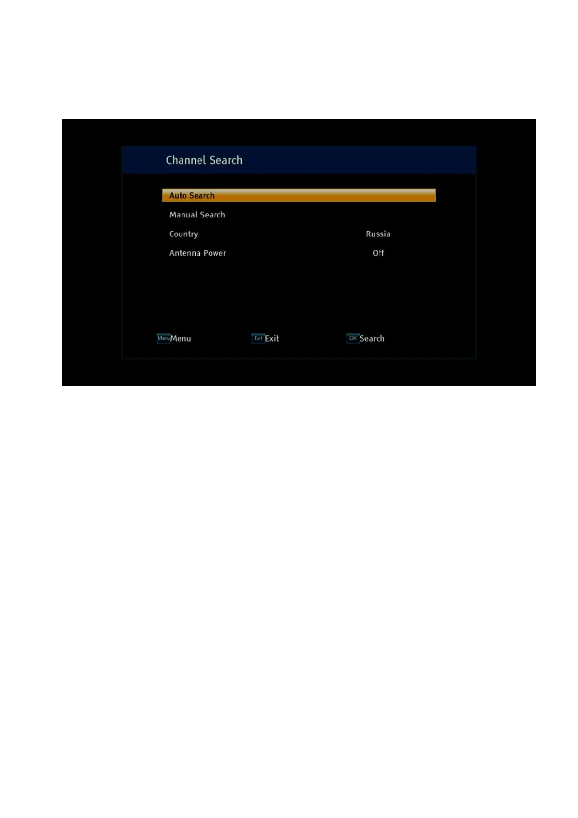 the Auto Search menu line and press the OK button. As a result, the receiver will scan all