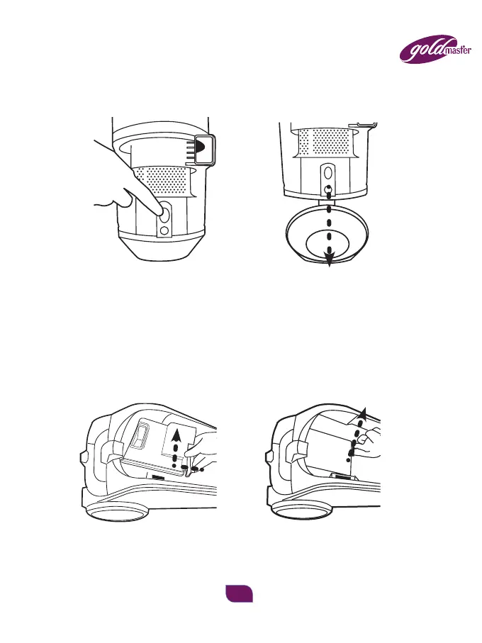 – Place the dust barrel over the garbage can; push the button to open