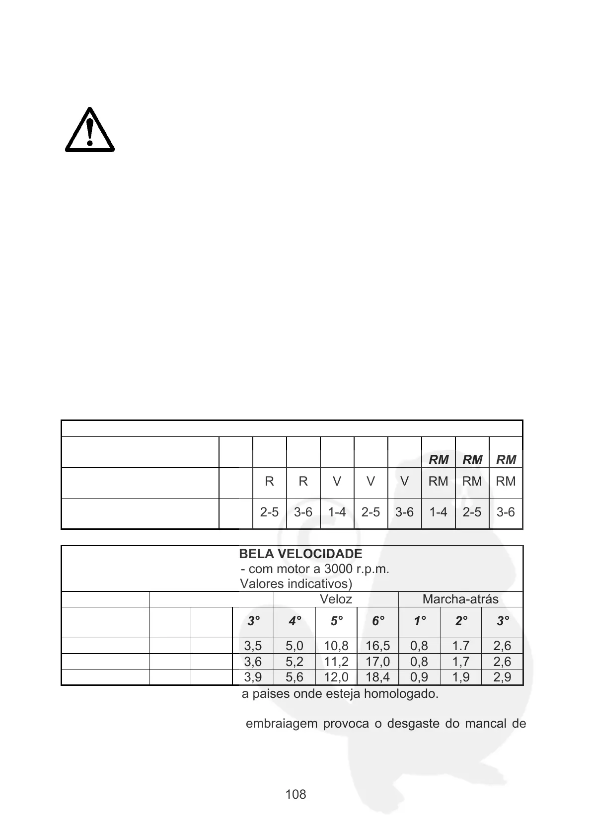 In km/h - com motor a 3000 r.p.m.