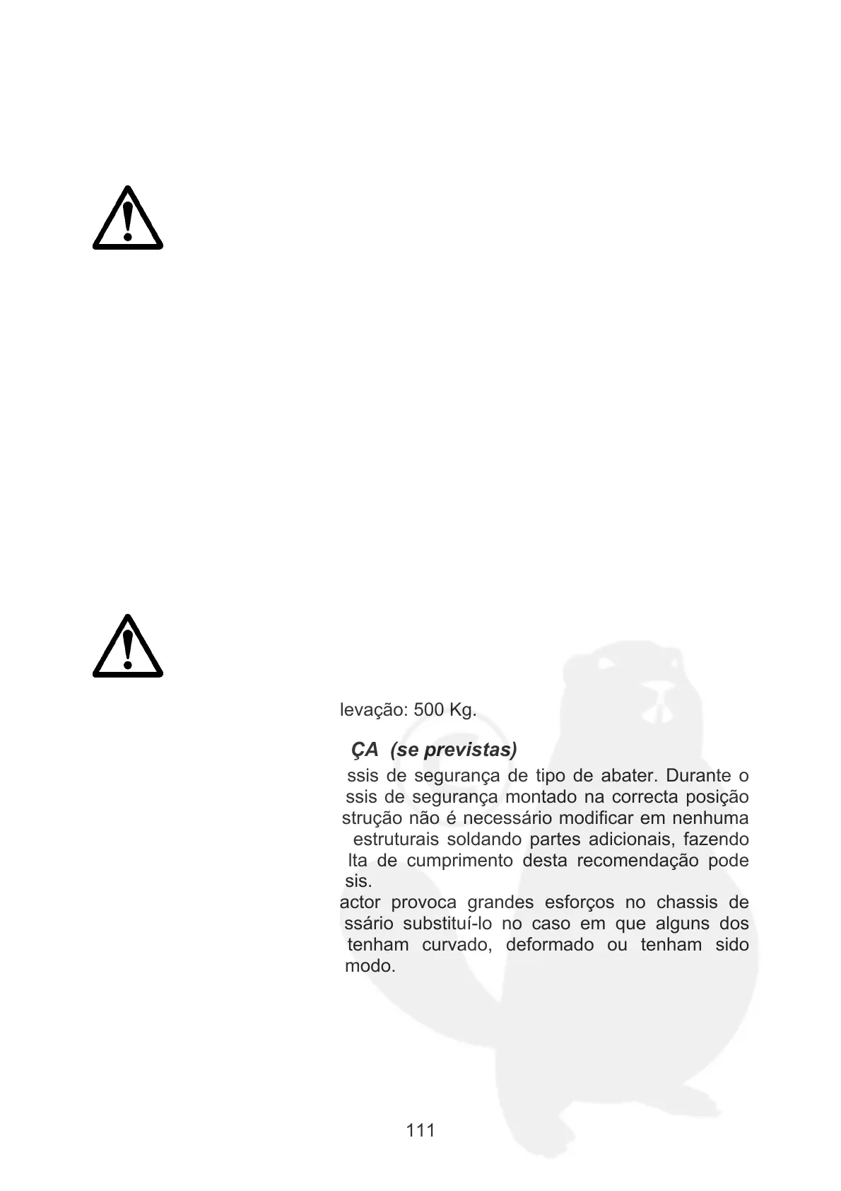 Peso máximo aos braços de elevação: 500 Kg.