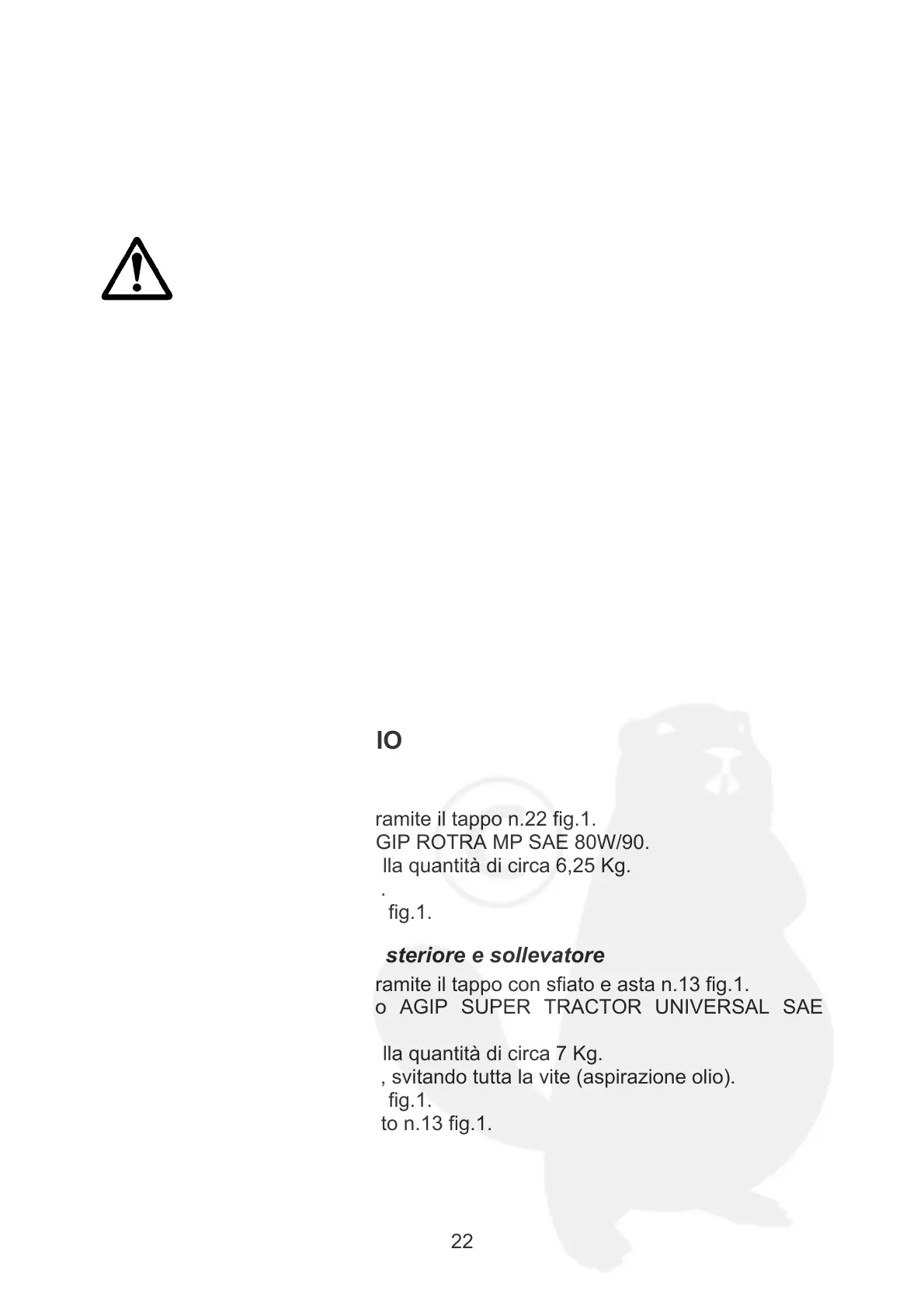 Verificare il livello ogni 50 ore tramite il tappo n.22 fig.1.