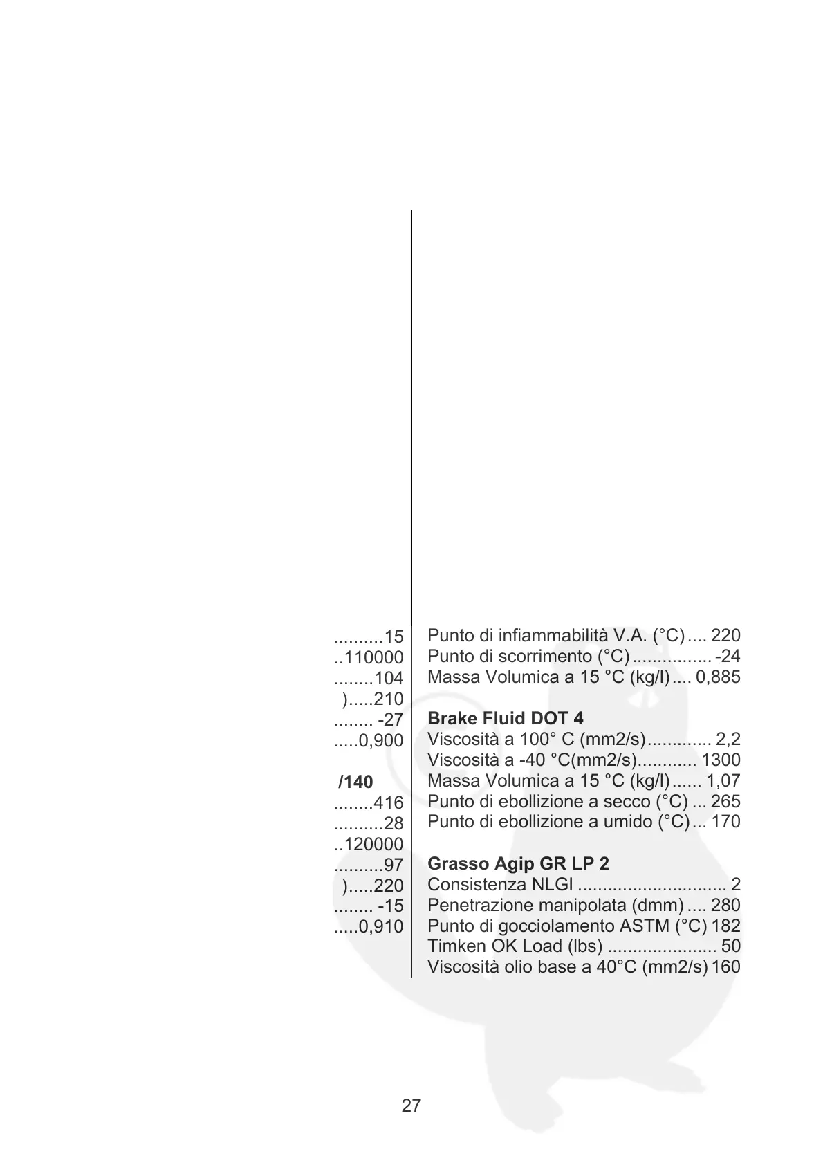 L'impiego di lubrificanti di altre marche, comporta il rispetto delle seguenti