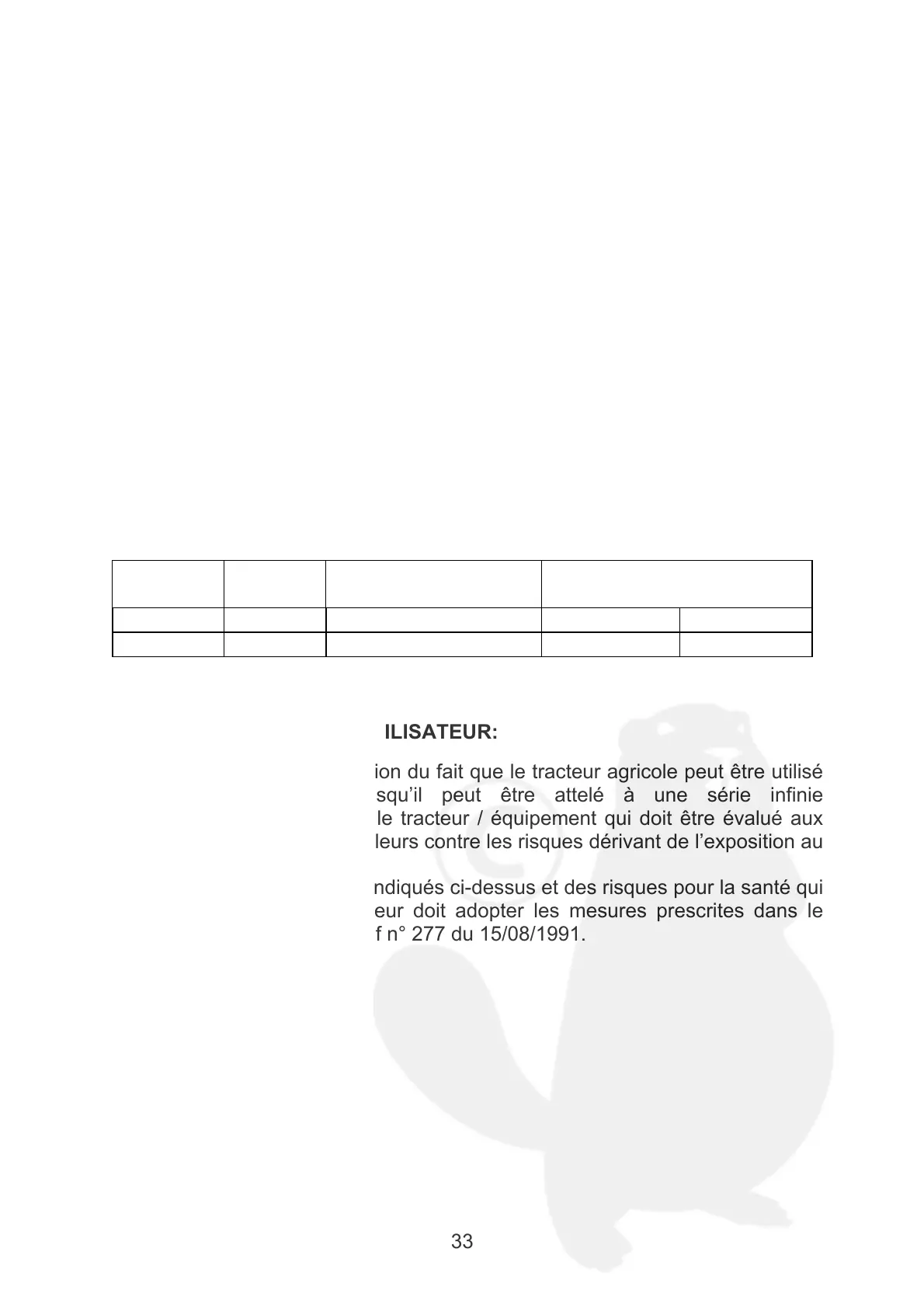 Il est rappelé qu’en considération du fait que le tracteur agricole peut être utilisé