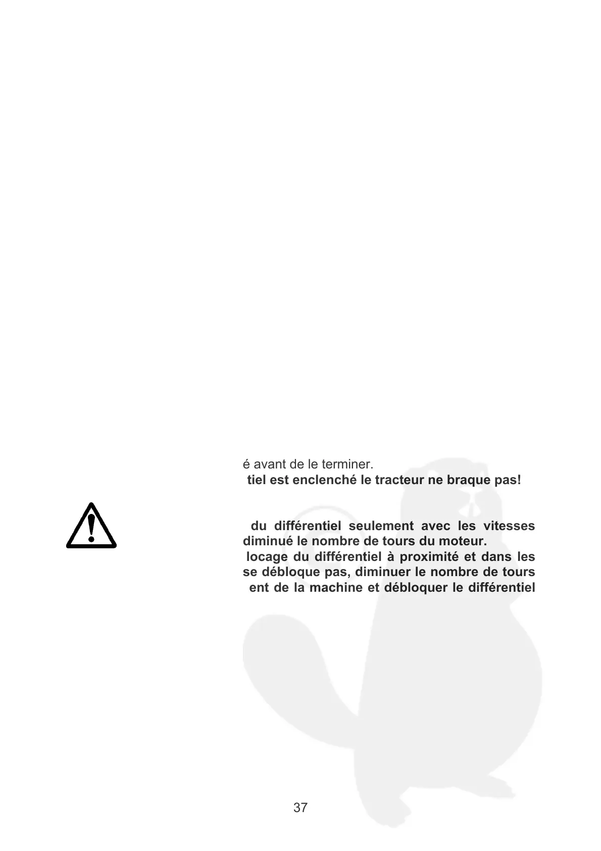 du moteur, arrêter l'avancement de la machine et débloquer le différentiel