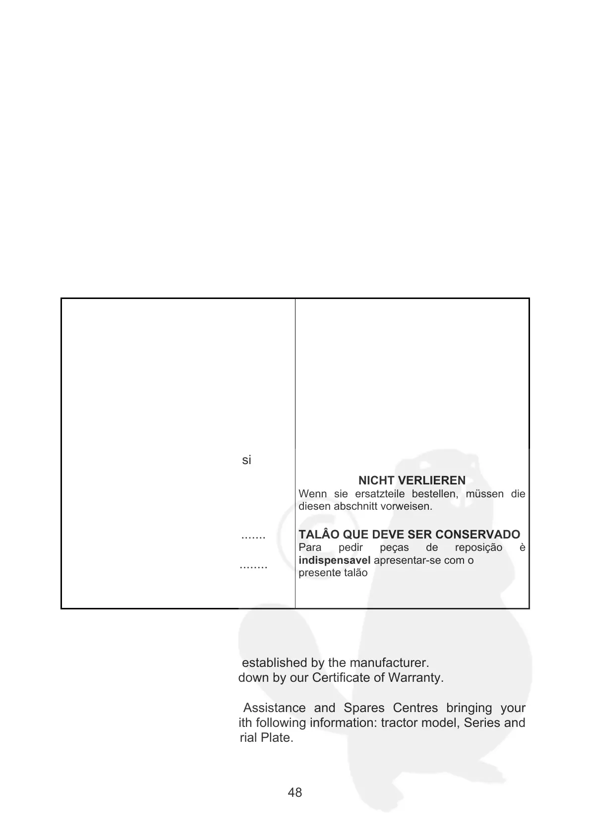 Tractor: within the terms laid down by our Certificate of Warranty.