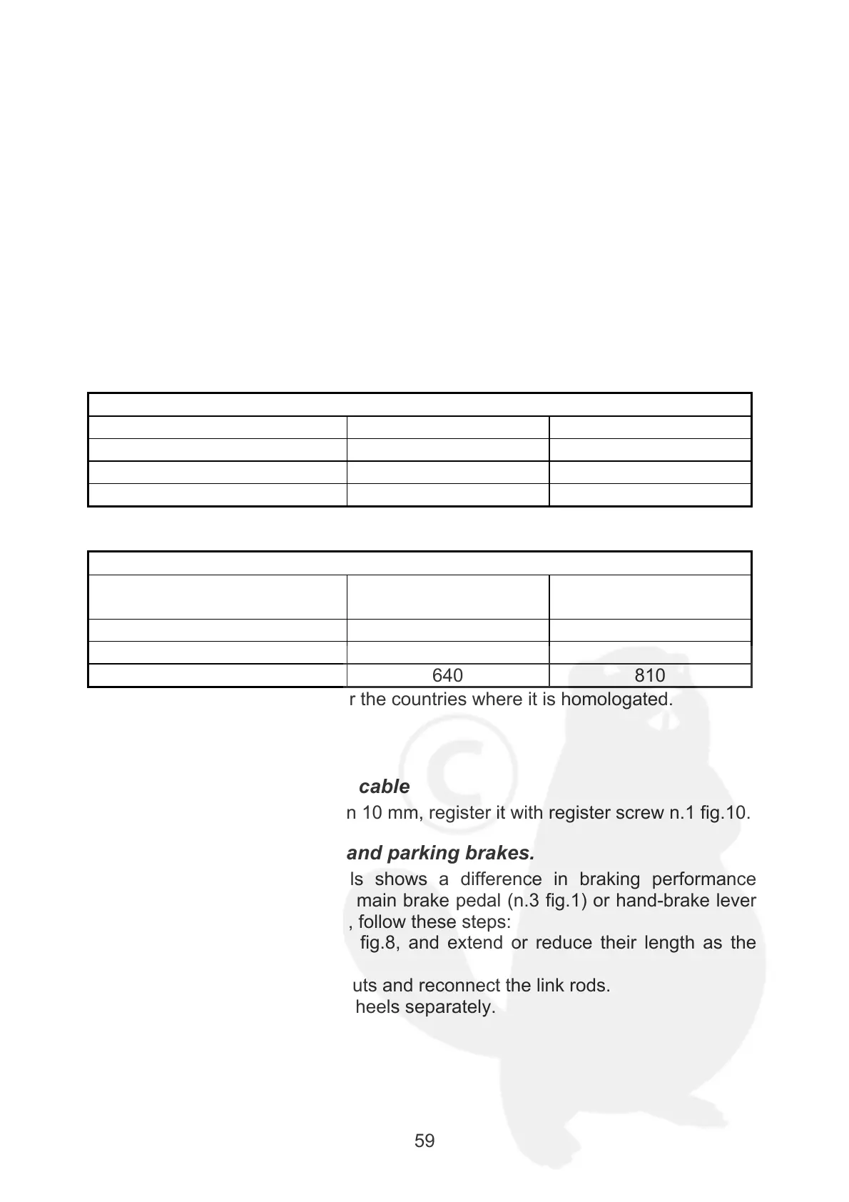 When pedal take up is less than 10 mm, register it with register screw n.1 fig.10.