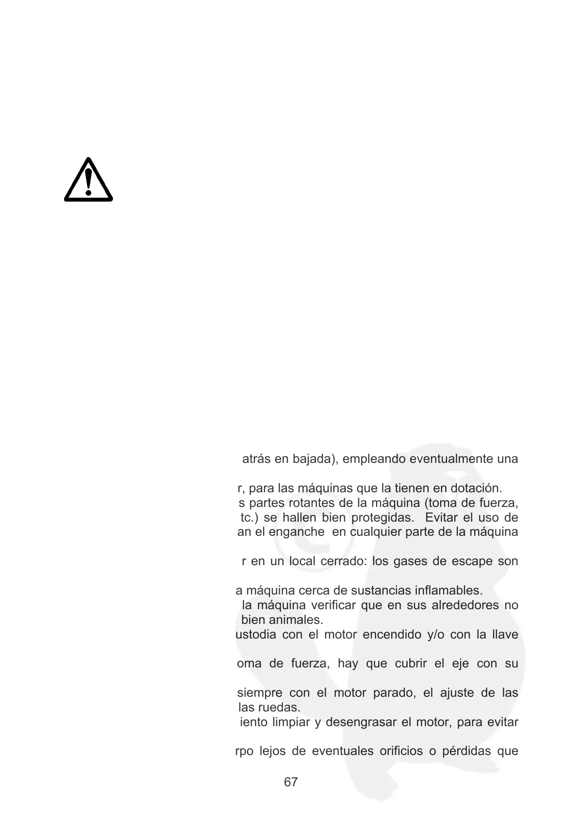 juntas de cardan, poleas, etc.) se hallen bien protegidas. Evitar el uso de