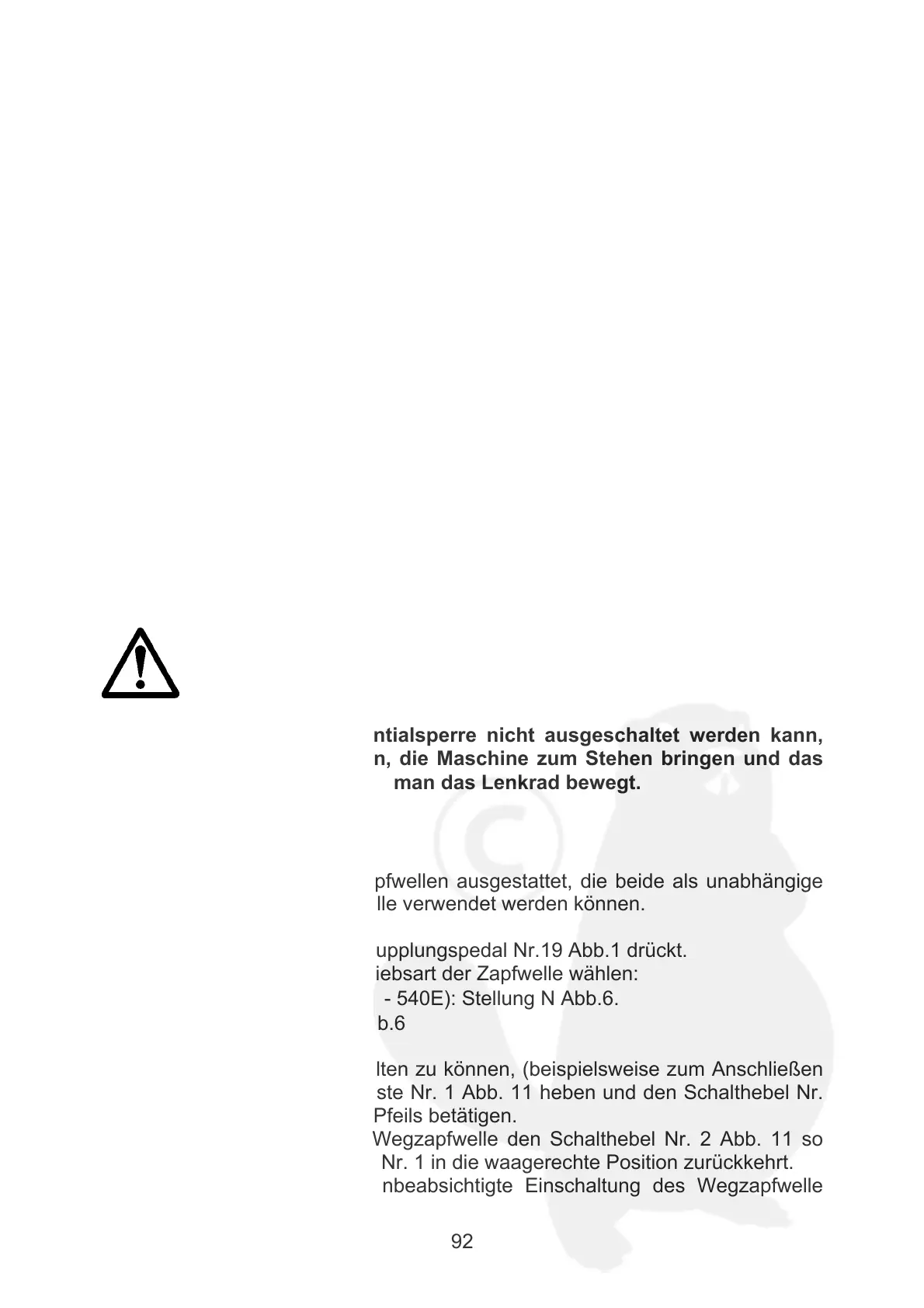 • unabhängige Zapfwelle (540 - 540E): Stellung N Abb.6.