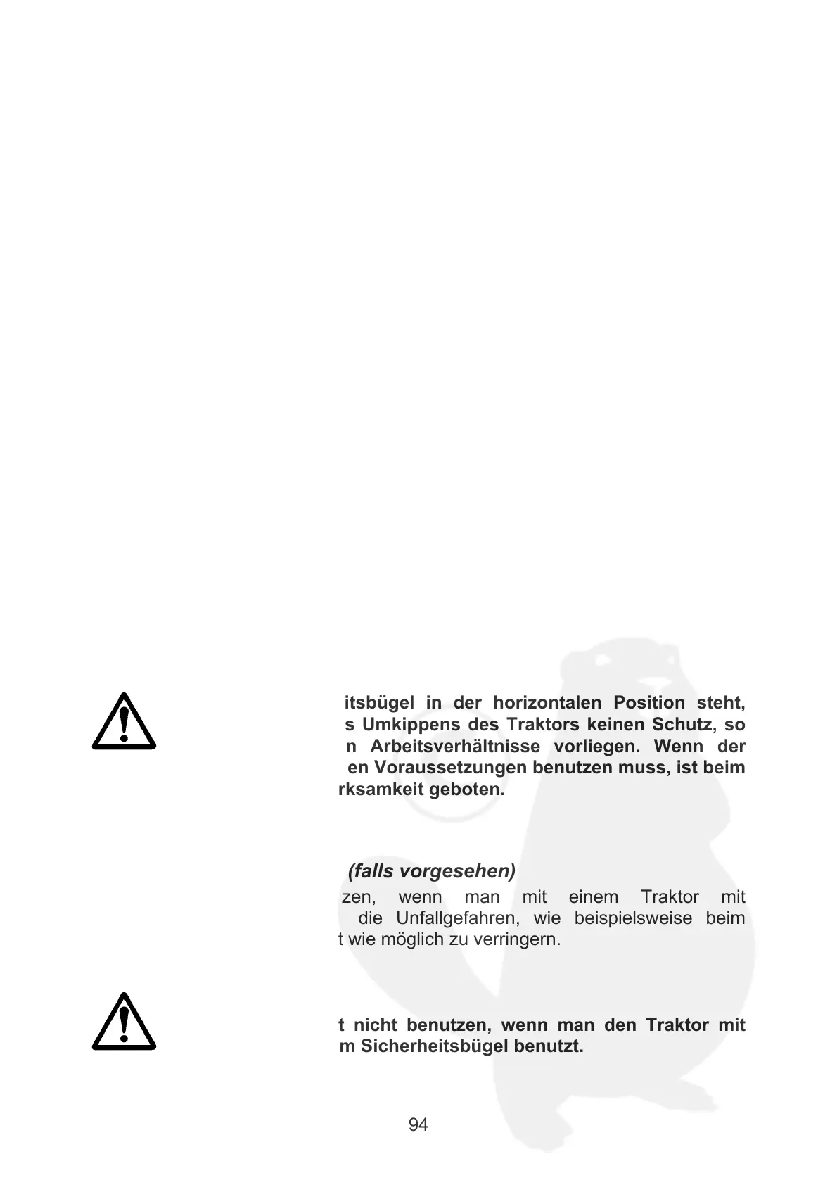 Den Sicherheitsgurt nicht benutzen, wenn man den Traktor mit