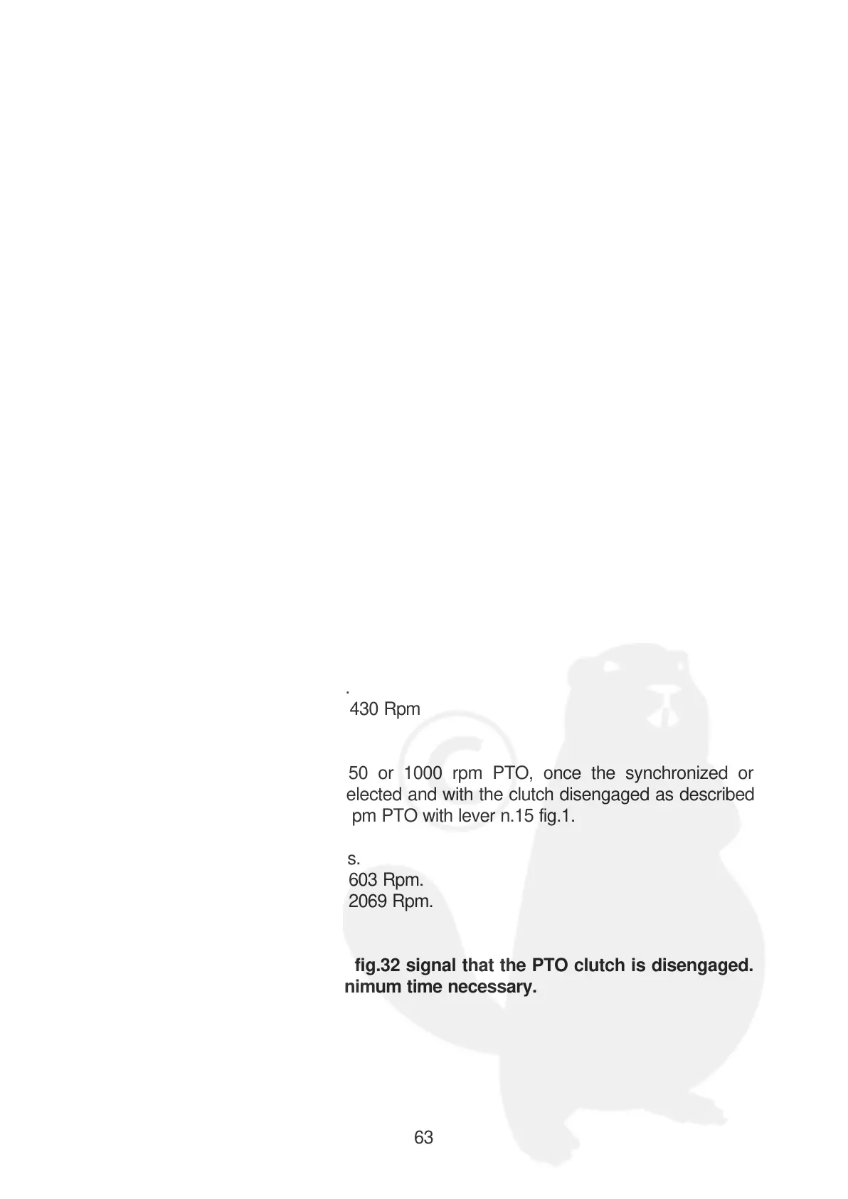 above, engage the 750 or 1000 Rpm PTO with lever n.15 fig.1.