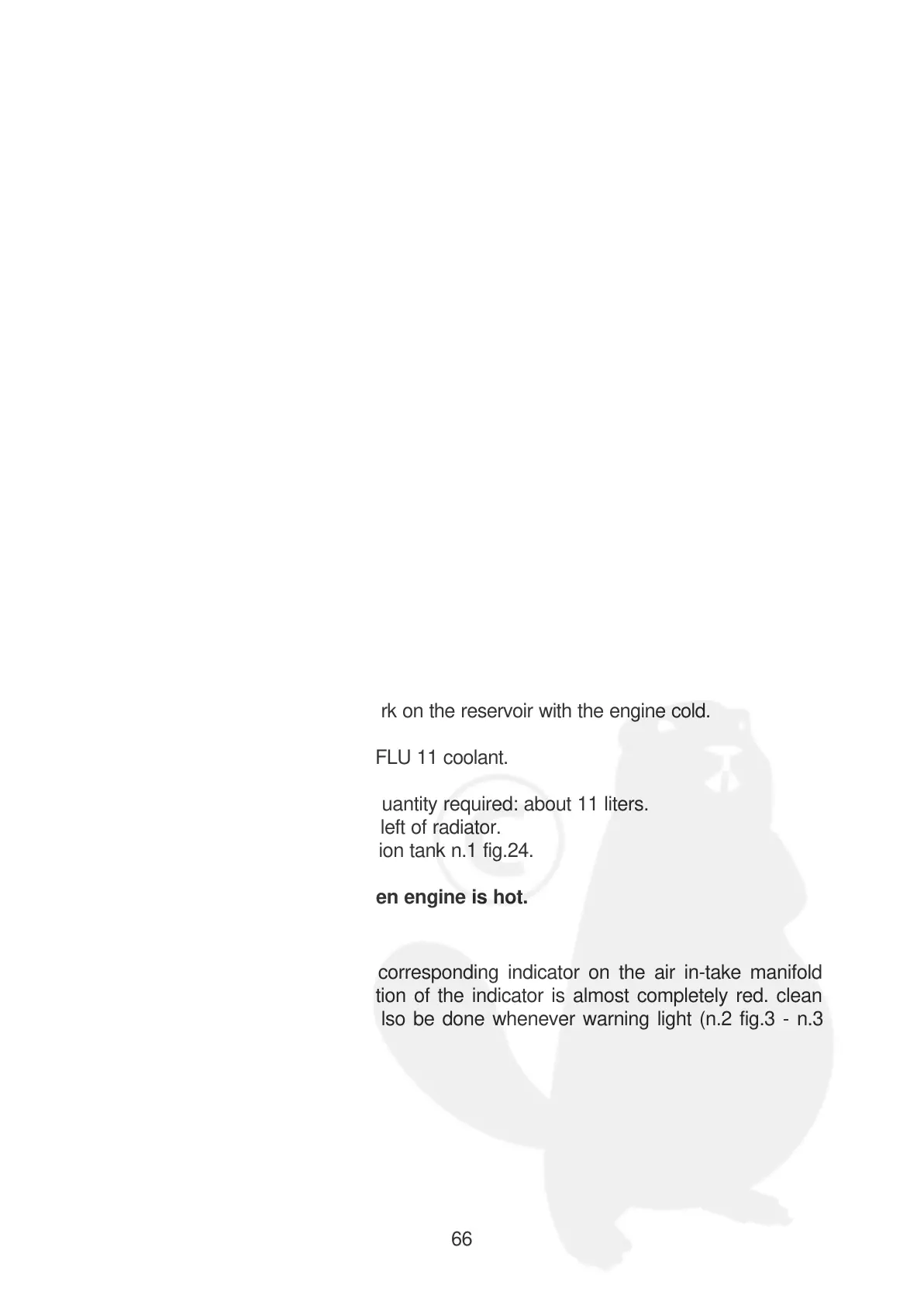 To add coolant: pour into expansion tank n.1 fig.24.