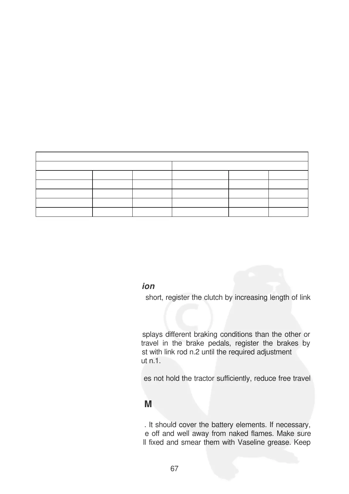 loosening nut n.1 fig.27 and adjust with link rod n.2 until the required adjustment