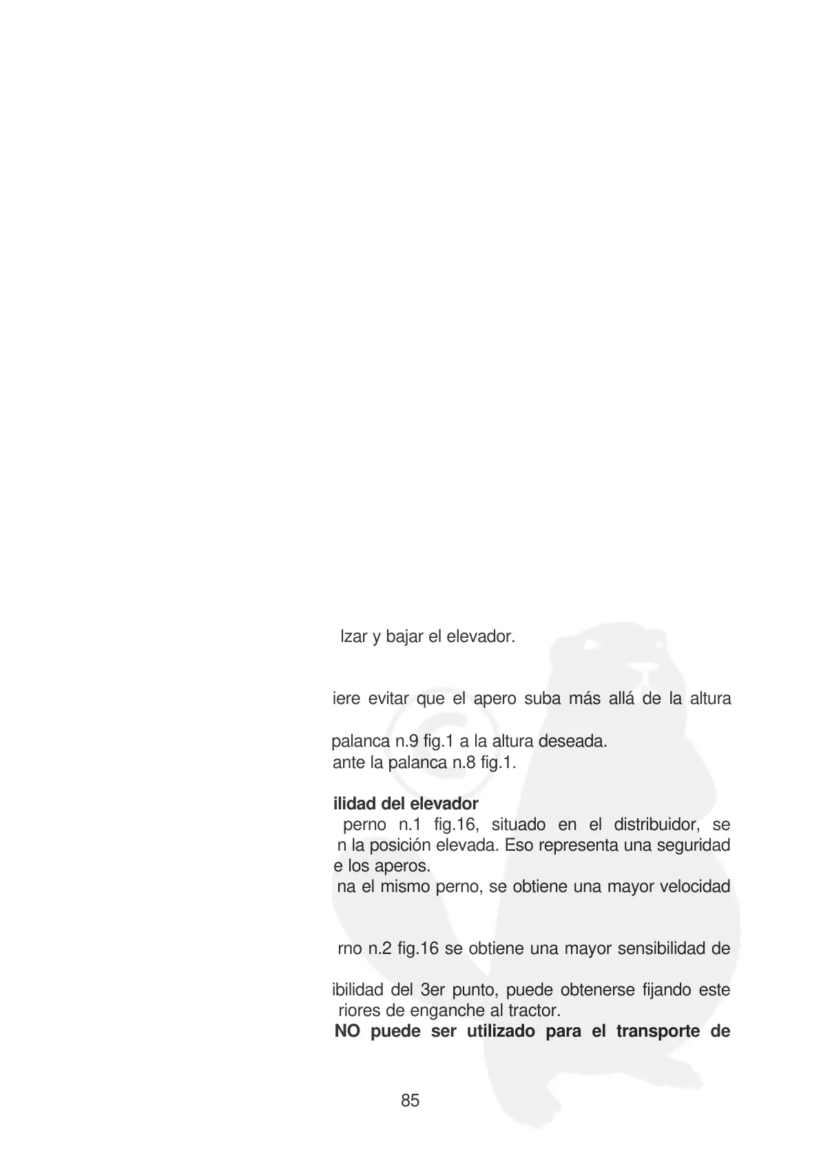El enganche del 3er punto NO puede ser utilizado para el transporte de