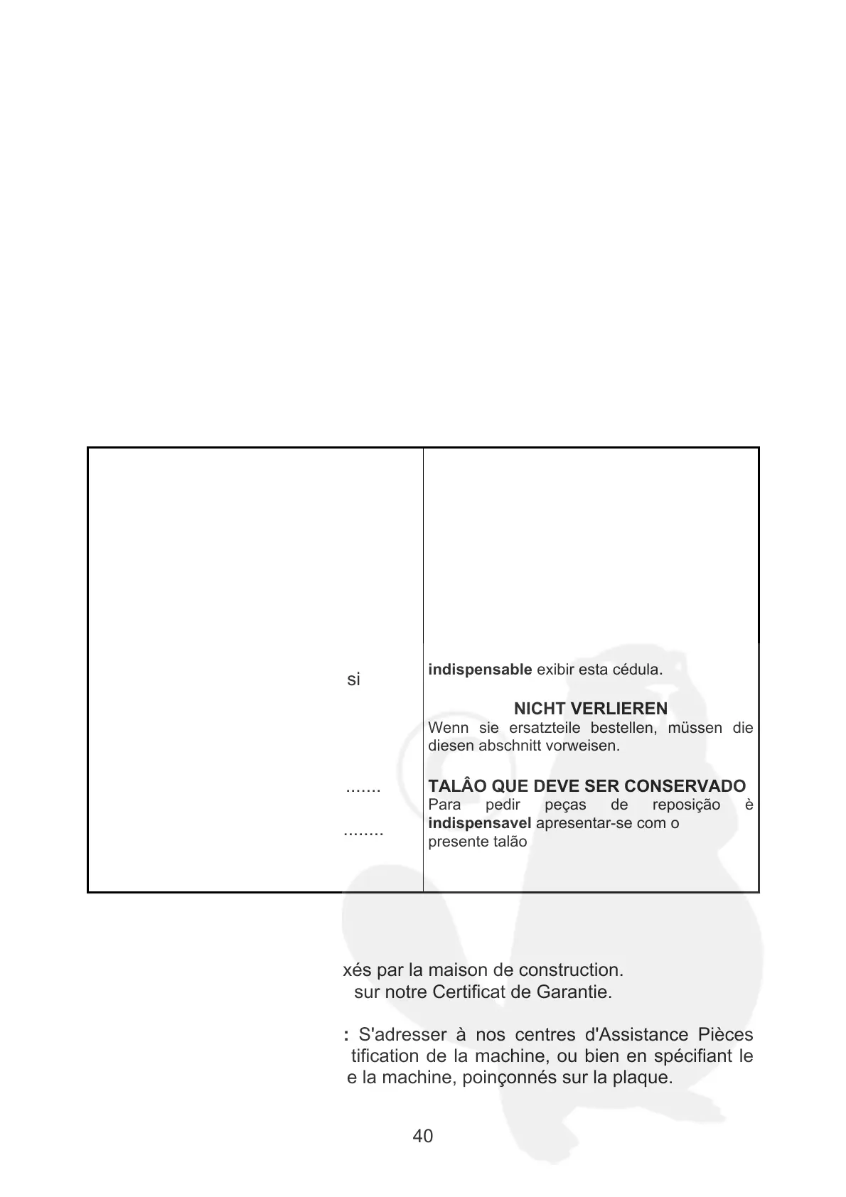 Machine: dans les délais fixés sur notre Certificat de Garantie.
