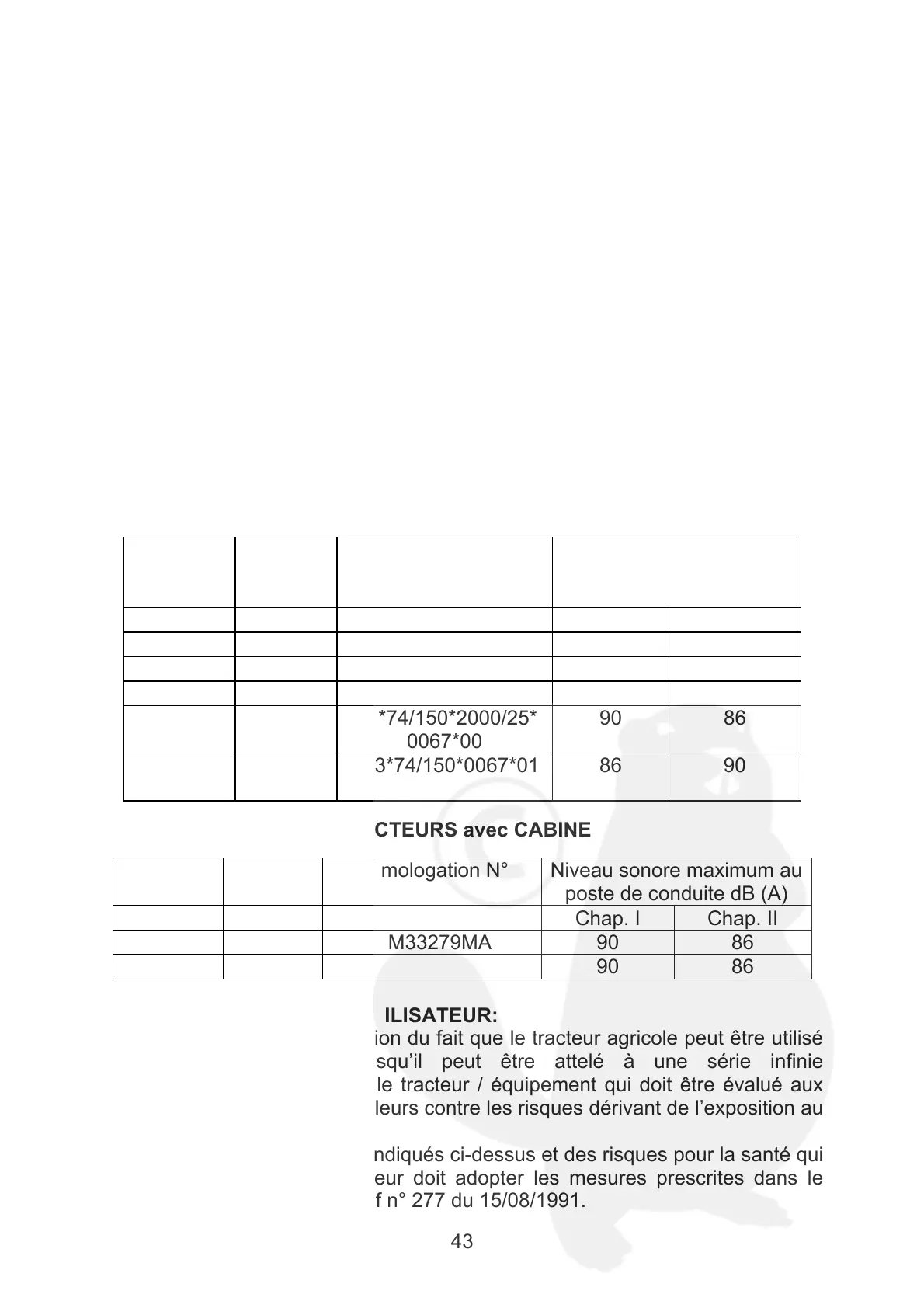 nous fournissons les valeurs relatives au bruit produit par les tracteurs qui sont